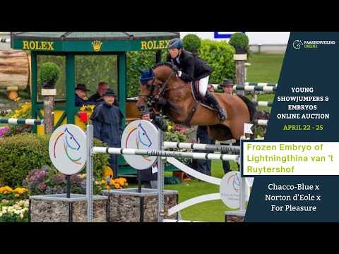 World’s most successful sire Chacco-Blue has been brought together here with one of the best damlines in the world. Dam Lightningthina van ‘t Ruytershof herself performed at 1.35m level and her oldest offspring is the 1.40m level competing Oxbow de Muze (s.Fantomas de Muze). Lightningthina is a half-sister of the 1.60m level horses H&M Luna van 't Ruytershof (s.Levisto Z) of Nicola Philippaerts, Messi van ‘t Ruytershof (s.Plot-Blue) of Janne Friederike Meyer and Missouri van 't Ruytershof (s.Bamako de Muze) of Pilar Lucrecia Cordon. Granddam Inathina van ‘t Ruytershof also foaled the 1.50m level horse Night Light van ‘t Ruytershof and performed at 1.40m level herself. This leading damline continues with the 1.60m level full sister of the olympic stallion Emerald.