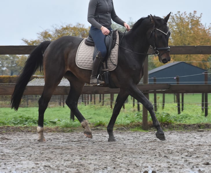 Meet Valesco van de Melane. We had the pleasure of acquiring him directly from the breeder, together with his stablemate Voltaire van de Melane. What a gem! A stunning, black-brown 4.5-year-old gelding approximately 1.68 m tall, with an impressive pedigree: Lavillion x Akribori x Ulft. A perfect combination for both dressage and show jumping. Valesco is truly a sweetheart of a horse. In the stable, he captures everyone's attention with his charming presence and thoroughly enjoys a cuddle. Under saddle, he demonstrates his willingness to work and his calm, sensible nature. He is very pleasant to ride and offers his rider a good feel in the hand. He has been radiographically and clinically examined, with sound legs, back, and neck. With his talent and versatility, Valesco offers many possibilities. He is a horse with a bright future, suitable for both sport (dressage and jumping) and recreational riding. He is well-versed in traffic and trailer loading, both now and in the past. Very social and free of any (stable) vices. Valesco is in excellent health and moves with great cadence, balance, and freedom. Price: €9,750 – including brand saddle and bridle.
