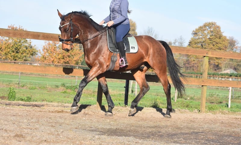We had the opportunity to acquire him directly from the breeder, together with his stablemate Valesco vd Melane. Meet Voltaire van de Melane, an impressive and elegant 4.5-year-old gelding approximately 1.75 m tall, with an excellent pedigree: Querido VG x Concorde Z x Tresor D 12. Click HERE for his papers. A horse with a bright future, suitable for both sport (dressage + jumping) and recreational riding. Voltaire is beautifully built and possesses a lot of presence and suppleness. He is a friendly, cheerful, and positive horse. Under saddle, he demonstrates his natural balance and cooperative character. He seeks a good connection with the rider and is a pleasure to ride. He is well-behaved in traffic and loading, both here and previously. Very social. Free of any (stable) vices. Voltaire is in excellent health and moves exceptionally well, with a lot of cadence, balance, and freedom of movement. He has been radiographically and clinically approved, with healthy legs, back, and neck. Price: €9,750 including a brand-name saddle and bridle, complete.