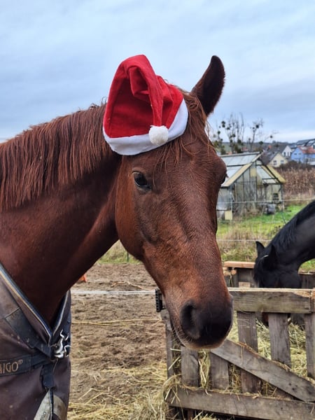 Expressive, beautiful dark chestnut mare ☆☆☆ Flumie ☆☆☆ Three very good basic gaits Winner in Riding Horse and Dressage Horse Class A Ridable with go Generally well-behaved and sensitive Healthy, with good X-ray results available Incredibly sweet and human-oriented horse Flumie enjoys groundwork and liberty work very much Very friendly with other horses, tends to be lower in the herd hierarchy Not for sale to resellers I look forward to friendly inquiries Video available upon request Test ride €35