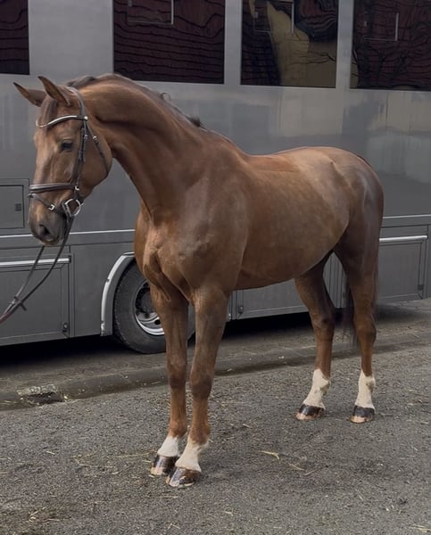Zum Verkauf steht unser charmanter Wallach Agostino, 8 Jahre alt, abstammend von Armitage x Contact van de Heffinck. Mit einem Stockmaß von ca. 1,85 m ist er ein absoluter Blickfang und bringt dabei ein ebenso großes Herz mit. Agostino ist sehr lieb im Umgang, menschenbezogen und stets freundlich. Er kennt Kinder und kann problemlos auch von ihnen geritten werden. Trotz seiner Größe ist er fein zu reiten und angenehm in der Hand. Auch im Gelände zeigt er sich brav, unerschrocken und zuverlässig – ein toller Partner für entspannte Ausritte. Aufgrund eines tierärztlichen Befundes, der ihn sportlich aber nicht einschränkt, wird Agostino deutlich unter Wert abgegeben. Er eignet sich daher ideal als Freizeitpartner mit Turnierambitionen, der einen liebevollen Begleiter sucht. Agostino war bereits schon auf Internationalen Turnier wie unter anderem in Holland. Wir wünschen uns für ihn ein wertschätzendes Zuhause. Bei ernsthaftem Interesse freuen wir uns über eine persönliche Nachricht.