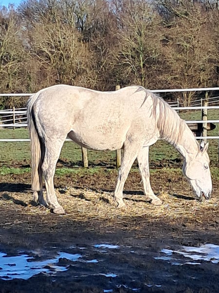 Large mare, born on February 14, 2012, standing 173 cm. Broken in 2019 but kept solely for breeding purposes. Excellent temperament, very maternal. Her progeny includes: - Palinko du Bois Halleux, M50 (France) - Qhyra du Bois Halleux, M35 (Germany) - Ulhick du Bois Halleux, M10 (Portugal) - Cripsi du Bois Halleux, born in 2025, sold in Germany Malika du Bois Halleux is the daughter of Ironie du Bois Halleux (elite mare BWP), who competed at M50-55 under saddle with Isabelle Gerfer, rider and owner. **Ironie**: 1st at Galhen U25 M50, 1st at Mannheim U25 M50, 7th at Aachen U25 M50 (2018-2019), plus numerous other notable results at M40/45 level. I am seeking a new home for Malika. She still has several years of breeding potential. **NO DEALERS, PLEASE** REASON: RETIREMENT FROM ACTIVITIES Price increased to €6,800 as of December 6.