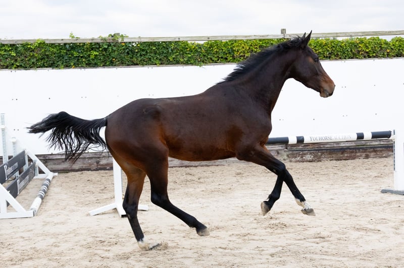 The five-year-old Unca Cabry is still somewhat green, but her jumping talent is undeniable. This mare consistently makes good jumps. She is light-footed and possesses quality. Her sire, Comme d’Api vd Hacienda, competed at the 1.60m Grand Prix level. A son of Cumano, he is also the sire of Hello Mr. President (1.60m GP) and Comme One Z (1.50m). Her dam, Ekaro, descends from the Olympic stallion Clinton. The granddam, Quinta van het Klingebos (Heartbreaker), competed at 1.40m level and also produced Hanibal (1.50m), Alonka (1.40m), and Malibu (1.40m).