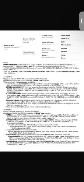 Great colt From J-nius vv Z x Diamant de Semilly X For Pleasure x Femke P. Mare on picture is thourougblood recipiënt mare. Dam is a young talented Diamant doing her first competitions. Femke P is ranked one of the best broodmares in jumping history on Hippomundo. Always quality and power in this damline. Only serious clients.