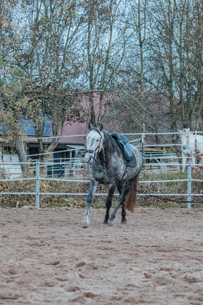 Je mets en vente mon hongre berbère de 7 ans, nommé Raif. C’est un cheval exceptionnellement amical et proche de l’homme, qui charme par sa douceur et sa nature facile au quotidien. Raif est très intelligent, sensible et toujours motivé à travailler avec son cavalier. Ce que Raif connaît déjà : * Promenades – en solo ou en groupe * Travail à pied * Travail à la longe * Travail en liberté * Selle connu * Il apprend actuellement à accepter le poids du cavalier, et il se montre ouvert et détendu à ce sujet. (Il n’a pas encore été monté en raison d’un manque de temps, mais Raif deviendra sûrement un cheval de selle fiable avec une formation appropriée.) Raif vit actuellement en paddock avec un troupeau de hongres. Il souffre d’une allergie au foin, qui peut se manifester par des symptômes de headshaking. Cela se traduit uniquement par une hypersensibilité au niveau de la bouche, ce qui peut causer des difficultés lors de la consommation de foin, surtout du foin sec, dont les tiges irritent sa bouche. Il peut manger sans problème de l’herbe, des granulés, etc. Il n’a pas montré d’autres signes typiques de headshaking. En paddock, lors du travail à la longe, à pied ou en promenade, il ne présente pas de symptômes. Avec du foin humide ou vaporisé, il est totalement sans symptômes et mange normalement. Je suis à votre disposition pour répondre à toutes vos questions en MP. Priorité à l’espace disponible, pas au prix.