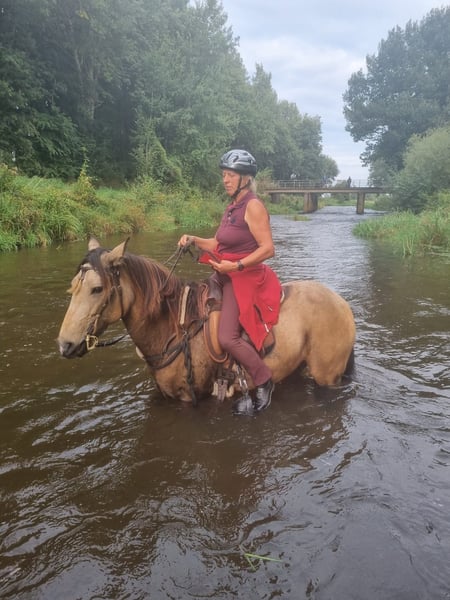 Zum Verkauf steht die reinrassige Berber-Stute NAFASEEH N’AIT ITRAN, geboren 06/2014, Goldfalbe, Stockmaß 154 cm. Eingetragen im Stutbuch I der VFZB mit der Gesamtnote 6,8. Abstammung: Vater: HÉCLAIR D’ARBRE MORT (Perlino) Mutter: AYANA (Schimmel) von JIHAL aus der GHARDAIA DE TRABAT Substanz, trockene Fundamente, Ausdauer und ein klarer, wacher Charakter kennzeichnen Nafaseeh. Sie zeigt sich menschenbezogen, kooperativ und nervenstark, mit feiner Reaktion auf Körpersignale. Aufgrund ihres Typs, ihrer Abstammung und der Eintragung im Stutbuch I eignet sie sich sowohl als gehfreudiges Freizeit- und Geländepferd als auch für Berber-Liebhaber mit Interesse an Rasseerhalt und Zucht. Die Stute lebt in einer kleinen Herde im Offenstall, ist gesund, schmiedefromm, geht auf den Anhänger und zeigt keine Unarten. In der Herde ist sie vorsichtig und geht lieber weg als zu streiten. Nafaseeh ist kein Anfängerpferd, überzeugt jedoch durch Ehrlichkeit, Vorwärtsfreude und Geländesicherheit, wach, mutig und ausdauernd. Sie ist eine Partnerin für Menschen mit innerer Ruhe, Klarheit und Respekt vor der Ursprünglichkeit dieser alten Rasse. Diese Stute sucht keinen „Besitzer“, sondern einen Menschen, der ihre Sprache versteht und ihr Raum lässt, sich zu zeigen. Die Abgabe erfolgt ausschließlich wegen Aufgabe der Pferdehaltung. Gesucht wird ein wertschätzender Platz bei Menschen, die die Besonderheit und Ursprünglichkeit des Berber-Pferdes kennen oder kennen lernen wollen. Bei ehrlichem Interesse freue ich mich über ein faires Angebot und ein Kennenlernen auf Augenhöhe.