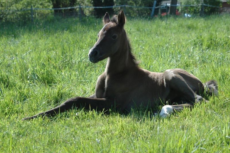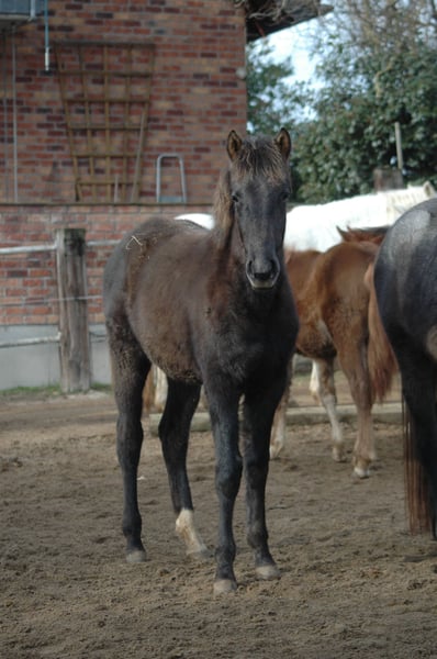 Berber mare Nisha al Aatik Sire: Hajri (TN) by Nadhif out of Teslia Dam: Elijah de Dienne (FR) by Pharid des Balmes out of Nate des Balmes She was born on April 28, 2023 as a bay and will be gray. Nisha is a foal with strong nerves. She is already able to express her own opinion, but is sensitive and very people-oriented. She is a spirited Berber mare, independent for her age and promises to grow up. Nisha loves to be close to people and because of her clear, spirited and intelligent character I can imagine her very well in horsemanship or working equitation. She is very typey, with a graceful face and long legs. Nisha needs a person who can offer her variety and develop her intelligence with a lot of empathy. Her Lahdjar influenced dam is an extremely easy to handle, gentle broodmare, from her sire Hajri (a bay stallion born and licensed in Tunisia) she has a stable foundation and a unique pedigree in Germany, which also makes her interesting for breeding. Nisha will have an estimated final height of approx. 1.56 m. She lives with her mother and siblings in our large, mixed-age herd. Nisha has been regularly wormed and vaccinated. A needs-based, mineral-rich diet is a matter of course for us. She has been trained from an early age in hoof trimming and leading. Contact and further information via WhatsApp 01578 1959559