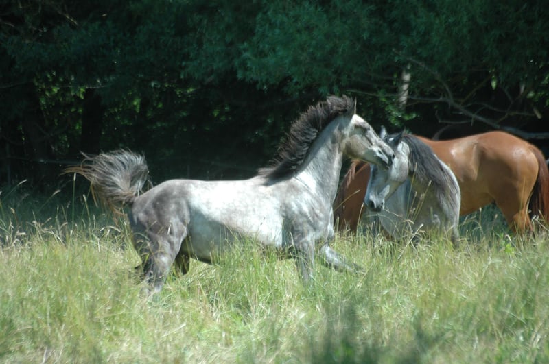 Berberstute Nisha al Aatik Vater: Hajri (TN) von Nadhif aus der Teslia Mutter: Elijah de Dienne (FR) von Pharid des Balmes aus der Nate des Balmes Sie ist am 28. April 2023 als Braune geboren und wird Schimmel werden. Nisha ist eine nervenstarke Berberstute, dabei sensibel und sehr menschenbezogen. Sie ist temperamentvoll, selbstständig für ihr Alter und verspricht groß zu werden. Sie ist sehr typvoll, mit einem grazilen Gesicht und langen Beinen. Nisha ist sehr anhänglich. Sie braucht einen Menschen, der ihr aufgrund ihrer hohen Intelligenz Abwechslung bieten kann. Ich kann sie mir sehr gut in der Reitkunst oder der Working Equitation vorstellen. Sie hat die hohe Sensibilität, die edle Erscheinung und Intelligenz ihrer Mutter geerbt, von Hajri (ein in Tunesien geborener und gekörter, brauner Deckhengst) hat sie das stabile Fundament, die ruhige, sanfte Art und eine von dieser Seite einzigartige Abstammung in Deutschland, was sie auch für die Zucht interessant macht. Nisha wird ein geschätztes Endstockmaß von ca. 1,56 m haben. Sie lebt mit ihrer Mutter und den Geschwistern in unserer großen, gemischtaltrigen Herde. Nisha wurde regelmäßig entwurmt und geimpft. Eine bedarfsgerechte, mineralreiche Fütterung gehört bei uns selbstverständlich dazu. Sie wurde von klein auf im Hufegeben und Führen geschult. Neben Nisha warten noch einige Fohlen und Jungpferde auf ihren Herzensmenschen. Wir freuen uns über Anfragen, gerne auch per WhatsApp 015781959559 Mehr Infos auf facebook oder berber-al-aatik.de