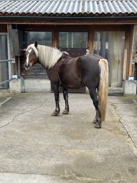 Schwarzwälder Kaltblut Wallach sucht Bestplatz Standort: Schweiz, Kanton Baselland Geburtsdatum: 05.02.2020 (etwas über 5.5 jährig) Stockmaß: ca. 152 cm, wächst noch 1-2cm Vater: Malibu VV: Modus von Montan Mutter: Nanny Mc Phee Herkunft: Schwarzwald Equidenpass vorhanden Importpapiere vorhanden - 01.04.2022 Er wurde mit zwei Jährig gelegt und dann von mir selber in die Schweiz importiert. Er ist neugierig und sehr menschenbezogen, lernfreudig, kontaktfreudig und freundlich. 🐴 Ausbildung und Arbeit • War von Sept. bis Dez. 2024 im Beritt • Beherrscht dem Alter entsprechend alle drei Grundgangarten unter dem Reiter, Übergänge, Rückwärtsrichten und Halten • Kennt Longieren und Bodenarbeit • lernt seit Ende Frühling das Gelände unter dem Reiter in Gruppen kennen. Dabei zeigt er sich sehr sensibel und auch ängstlich. Alleine war er noch nicht draussen. Ich habe ihn, seit ich ihn mit zwei Jährig in die Schweiz geholt habe. Er durfte im Herdenverband aufwachsen und ich lehrte ihm das Fohlen ABC, danach Bodenarbeit, sowie Spaziergänge im Gelände. Die weitere Ausbildung erfolgte durch einen professionellen Bereiter ruhig und schonend, seinem Wachstum entsprechend. Mit über 4.5 jährig startete der Beritt. Er wird freizeitmässig Western geritten, was aber noch gut geändert werden kann. Den momentanen Westernsattel habe ich in Miete, diese kann evtl. übernommen werden. Diverses Zubehör wie Trense, Westernzaum, Neoprenpad, Putzzeug, Apotheke etc. gebe ich dazu. 🐴 Haltung und Gesundheit • Steht zur Zeit in einer Paddock Box mit täglichen Weidegang. Ist sozial, kontaktfreudig und unkompliziert • jährliche Impfungen, sowie jährliche Zahnarztbesuche werden penibel eingehalten. Dabei zeigt er sich lieb und unkompliziert im Umgang mit der Tierärztin • alle vier Hufe beschlagen 🐴 Verkaufsgrund Ich habe ihn vor knapp 4 Jahren mit sehr starkem Übergewicht gekauft und mir erhofft, ihn durch meine Abnahme bald möglich reiten zu können. Nun steht ein Pferd, dass arbeiten möchte im Stall, ich bin aber noch viel zu schwer. Leider läuft die Gewichtsabnahme nicht so wie gewünscht und bringt auch weitere gesundheitliche Folgen mit sich, wodurch er zu wenig gefordert wird. Ich denke auch, dass mein reiterliches Können nicht für die weitere Förderung reichen wird. Ich wünsche mir für ihn eine ruhige Bezugsperson die ihn täglich Bewegen kann und eine grosse Weide mit anderen Pferden zum Spielen. Kein Kinder- oder Anfängerpferd AKU ohne Probleme möglich Gerne möchte ich ab und zu ein Bild von ihm bekommen und ihn, je nach Standort zwei- dreimal im Jahr an seinem neuen Platz besuchen. (Natürlich angemeldet) 😊 Ausserdem möchte ich das Vorkaufsrecht, bei Weiterverkauf, damit er kein Wanderpokal wird. 🐴 Preisklasse C - Aber Platz vor Preis