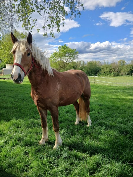 Très sage et manipulable en licol, sinon encore brut. La pleine sœur de Layla, Lotte, a récemment été primée en tant que jument d'État. Un polyvalent à éduquer soi-même.