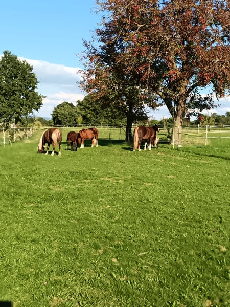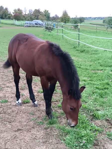 Ramazzotti ist ein super schickes Fohlen von Rasputin mit der seltenen braunen Farbe. Ramazzotti ist bei der Fohlenschau in Sankt Märgen mit Elitesilber ausgezeichnet worden . Er bekam mit 33 Punkte und in der Bewegung bekam er 9 Punkte. Er beherrscht das Fohlen ABC und ist einfach ein super Bursche. Ramazzotti ist am 27 Mai geboren und wird deshalb jetzt erst abgesetzt. Er ist im Herrenverband aufgewachsen . Seine Mutter hat ein Stockmaß von 156 und seine Schwester von 2024 ist auch schon sehr groß. Nähere Infos bei Andrea Schuster-Koch