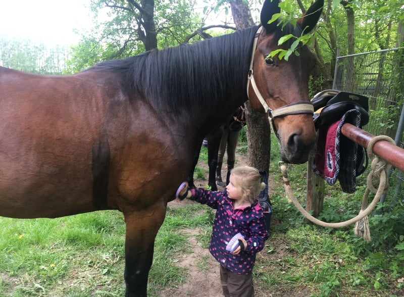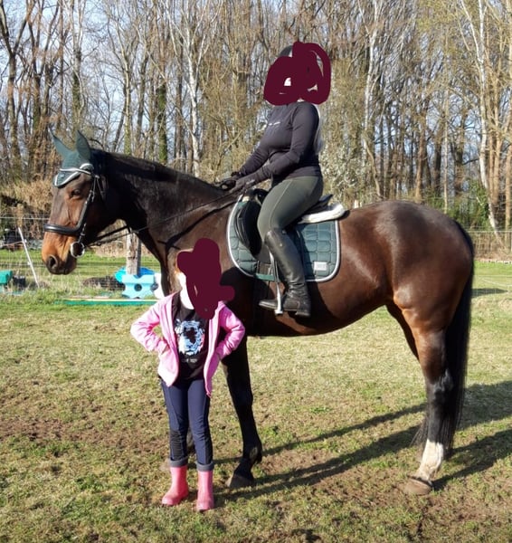 Ich suche für meine Stute Samira ein neues zu Hause. Sie ist eine Warmblutstute mit vollen Papieren,Sie ist braun, 15 Jahre alt und hat ein Stockmass von 1,69 m. Sie wurde die Jahre vorher als Freizeitpferd geritten, springt sehr gerne und lässt sich auch dressurmäsdig gut reiten. Im Umgang ist sie brav, unter dem Sattel jedoch sensibel und fein an der Hand- eher ein Pferd für gefühlvolle Reiter. Sie wurde jetzt ca. 2 Jahre nicht mehr gearbeitet, daher verkaufe ich sie ausschließlich als im Moment nicht geritten oder als Zuchtstute. Daher auch kein Probereiten möglich! Mit Zeit und Geduld ist sie in Zukunft auch wieder reitbar. Im Moment hat sie leider nur bei uns auf der Koppel gestanden, ab und an wurde in letzter Zeit noch Bodenarbeit mit ihr gemacht. Sie steht bei uns im Sommer komplett draußen, im Winter im Stall mit Koppelgang tagsüber. Sie ist Schmiede- und verladefromm. Solange sie bei mir stand, war sie noch nie krank! Sie hat sehr gute Papiere. Hatte auch schon ein Fohlen. Platz vor Preis Bei weiteren Fragen einfach schreiben, gerne auch per WhatsApp 0176 43929338 Ein Video vom reiten ist verfügbar