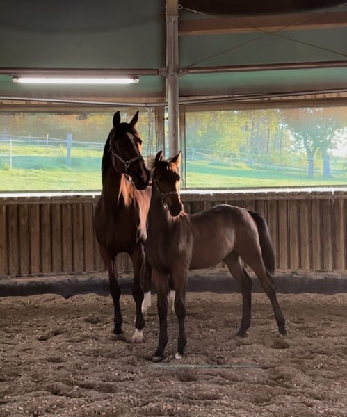 Urocza klacz hodowlana od Quatermana/Rohdiamant, obecnie w ciąży z Diamantenglanz, na sprzedaż. Ma na koncie dwa źrebięta: rocznego ogiera od Morricone, jedno źrebię od For Romance oraz obecne źrebię od Diamantenglanz, widoczne na zdjęciach w tej kolejności. Klacz nie nadaje się już do jazdy. Może służyć wyłącznie do hodowli lub jako koń towarzyszący. Obecnie ma jeszcze źrebię Beifuß i będzie dostępna dopiero po odsadzeniu, jesienią.