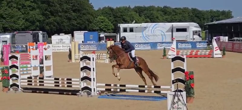 Stunning 4-year-old Chestnut Mare with Top Pedigree – Promising Youngster for Dressage & Show Jumping For sale is an exceptionally talented and beautiful chestnut mare, 4 years old, standing at 16.1 hh – a true gem for ambitious riders seeking a versatile, performance-oriented, and easy-going partner. Pedigree: Weltmeyer – a lineage renowned for rideability, willingness to perform, and movement potential. This mare impresses not only with excellent genetics but also with clear successes in the competition arena. Achievements & Training Level: • Multiple wins in A-level dressage tests • Competed in A-level show jumping • Rideable, sensitive to aids, with three very good basic gaits • Clear-minded and eager to learn – ideal for further development Character & Handling: • Load-trainable • Farrier-friendly • First competition experience – confident and calm even on unfamiliar grounds • People-oriented, friendly in handling, pleasant stable companion This young mare combines everything desired for advanced amateur or competitive sport.
