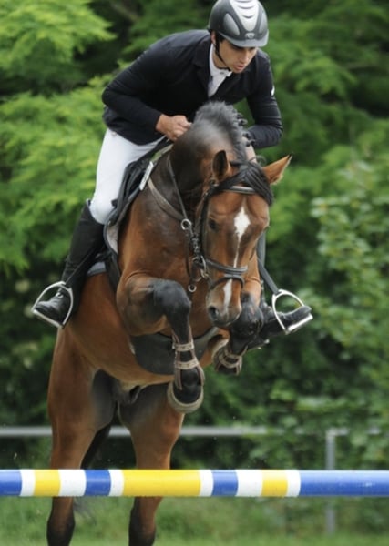 An athlete through and through, type-marked and with a clear performance statement. Caracas B convinces with good basic gaits and fantastic jumping in terms of ability, leg technique and bascule. He is particularly rideable and has a pleasant eagerness to work. Caracas B passed a very good stallion performance test in Adelheidsdorf in 2015 (overall score 8.35; jumping score 8.88) and, after winning and placing in tests for young show jumpers, is now consistently successful with Jan-Carsten Weber in medium and advanced level show jumping competitions. The oldest offspring are currently growing into show jumping age and give rise to high hopes. The sire Charilan, a large-framed son of the legendary Calido I, was only available for breeding for a short time. He was highly placed in tests for young show jumpers and produced several show jumpers up to advanced (S) level. His dam Chanel was herself successful in basic show jumping. Her sire Cranach was a Bundeschampionat finalist and placed up to advanced level. The granddam Paquita is a full sister to the sire Pablito (PB Hann., USA). Her sire Pablo was already a dazzling stallion personality at a young age. He was a serial winner in tests for young show jumpers and a successful participant in the Bundeschampionat for German show jumpers. Furthermore, Pablo, who was very popular with breeders, produced several highly paid auction foals and horses as well as licensed sons. In 1992, he was awarded the I b main premium after evaluation of HLP and first foal crop. Arsenik and Steinhäger are highly proven show jumper sires in the back generations. The Hanoverian dam line 849/Steinreiche (by Steinhäger-Ester II-Freddy III-Almsport) is at home in the area of the former traditional station Sulingen.