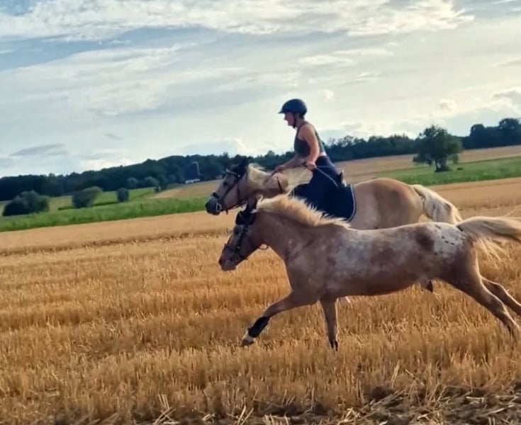 Guten Tag, „Chinook“ sucht ein neuen Möhrchen geber da er leider aufgrund von Zeitmangel zu kurz kommt. Er ist 115cm, und ca 15 jahre alt. Chinook hat viel Charakter und auch ordentlich viel Go. Er ist wenn man klare grenzen vorgibt ein cooler Wegbegleiter der wirklich alles mitmacht und super lieb ist. Chinook hat bisher 3 Besitzer, der erste Besitzer Wechsel war ca 3 jährig und 11 jährig ist er dann zu mir gekommen. Er lief zwischendurch auch ein paar Jahre 2- bis 3-mal die Woche im Reitunterricht und hat auch da ein guten Job gemacht. Als Handpferd kann man ihn auch gut mitnehme da hält er auch absolut problemlos mit deutlich größeren mit. Er ist sehr verspielt und wäre auch ein toller „älterer Begleiter“ für jung Pferde Herden. Das funktioniert super mit ihm da er zwar viel und gerne spielt allerdings lässt er sich nicht unterbuttern und hilft einem bei der Erziehung der jungen Wilden. Wenn du Interesse oder Fragen hast melde dich gerne. Auch ein Kennenlernen ist nach Absprache jederzeit möglich.