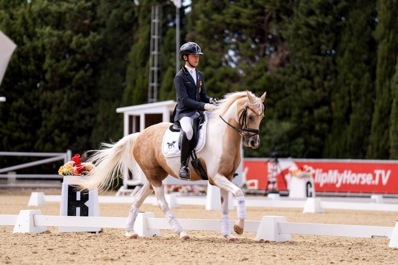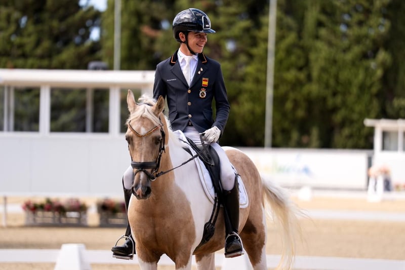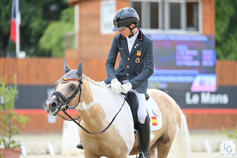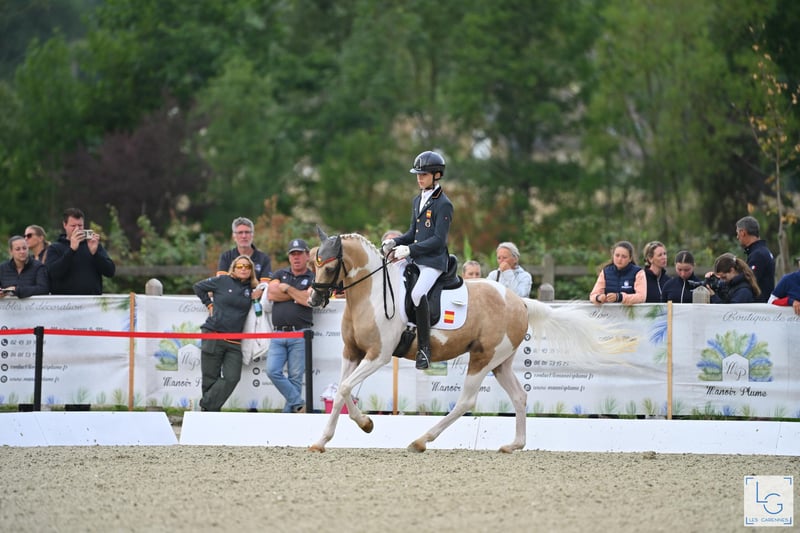 Meet Mon Amie, a beautiful 16-year-old palomino mare with an impressive expression, great nobility, and a lot of class. Her physique, her gaits, and her attitude make her a truly special pony. Imported from the Netherlands this season, she has started competing in high-level competitions for the first time this year… and her evolution has been extraordinary! From her first competitions, she has shown a big heart and total commitment in the ring. She has been growing competition after competition, quickly revealing her true sporting potential. 🔹 Age: 16 years 🔹 Height: 1.49 m 🔹 Color: Palomino 🔹 Breed: Hulpboek Rijpony 🔹 Bloodlines: Heidehof’s Don Diego / Orchard c’Avranches 🔹 Level: FEI Pony and Children’s 0* 🔹 Results: ✨ Member of the Spanish Pony Team – European Championships 2025 🥈 Silver Medal – Spanish Nationals 2025, Dressage, Children’s Category 0* 🥇 Gold Medal – Andalusian Championships 2025, Pony D • Numerous podium finishes in national and international competitions • Scores between 68% and 70% Versatility: Can compete in FEI Pony, Alevín, Infantiles, and Children’s 0* categories Character: All heart. Sweet, hard-working, confident, and very cooperative. She will delight her new rider, both at home and in competition. Ideal for: Families and trainers looking for a mature, reliable, and competitive FEI pony for a young rider who wants to compete ambitiously and aims for significant results both nationally and internationally. Dressage Sotogrande (Spain) Diego Ramírez – +34 625 560 289 info@dressagesotogrande.com Videos, results, and veterinary check available International transport available A competition mare with soul, beauty, and a lot of class. Mon Amie has everything to be an unforgettable partner.
