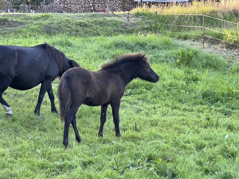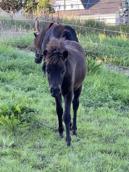Dado que no mantenemos sementales, este prometedor joven está a la venta. "Janikos Just in Black" nació el 02.05.2025 con nosotros, a primera vista puede parecer un poco discreto en su abrigo negro, pero eso es un gran error. Lleva el gen de tigre y zorro, lo que significa que aún se volverá atigrado, no permanecerá completamente negro, probablemente irá en la dirección de un tigre de copos de nieve. (Se dispone de prueba genética) Su altura final estimada será de alrededor de 110 cm, lo que lo convierte en un excelente pony de conducción o para niños, también sería posible utilizarlo para la mejora genética en la cría. Además de su color de pelaje, que es algo inusual para los ponis clásicos, tiene muy buenos aires básicos. Al momento de su entrega en noviembre, estará familiarizado con el transporte en remolque, paseos, atado, cepillado, dar las patas y mucho más. Recibe documentación completa del sindicato de cría de caballos MV, ha estado con el herrador cada 6-8 semanas y es seguro con cercas eléctricas, así como familiarizado con caballos grandes y otros ponis. Nuestros ponis conocen el establo, pero crecen principalmente en pastoreo o en establos abiertos. El 28.06 se llevó a cabo la exhibición de potros, donde recibió su chip y la evaluación del sindicato, con 25.5 puntos se calificó para el campeonato de potros élite. En el campeonato de potros élite pudo asegurar la codiciada prima de potro élite con 81 puntos y una nota de 9.0. Tipo 9 - 9 - 9 Exterior 9 - 9 - 9 Movimiento 9 - 9 - 9 Sus hermanos (maternos) de años anteriores lograron colocarse en el campeonato con notas finales alrededor de 9.1 y 8.8 y regresaron a casa con la cinta de vicecampeón en los ponis Shetland de raza pura alemana. Puede ser castrado con un costo adicional, si ambos testículos están presentes, también con nosotros. Los videos del campeonato de potros élite se pueden encontrar en YouTube. Janikos Just in Black Pony Clásico Tigre negro *02.05.2025 Altura final aproximadamente 110 cm M: Viktoria Janica (Imagen 12) DPbShP Pintado negro 105 cm MV: LH Varus (Shet) MMV: EH Karon I (Shet) V: HB1 Just Dance vom Regenbogen (Imagen 13) Pony Clásico Pintaloosa marrón y blanco 105 cm VV: Just in Time (Pony Clásico) VMV: Borax vom Silbersee (Shet)