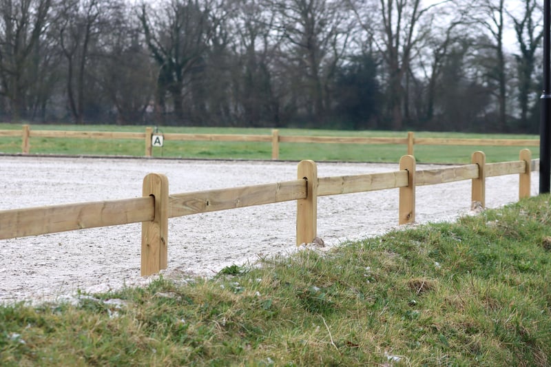 Dressage arena | Wooden riding arena fence | Dressage square with wooden fencing