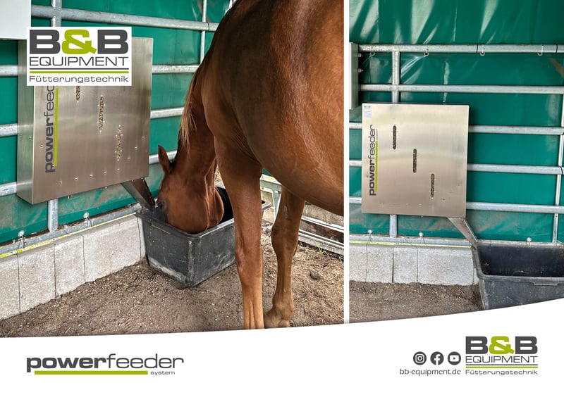 Das powerfeeder-System von B&B equipment ermöglicht eine zeitgesteuerte, bedarfsgerechte Fütterung. Mehrere kleine Portionen über den Tag verteilt fördern die Verdauung, reduzieren Futterneid und sorgen für Ruhe in der Herde. Dank robuster Bauweise und durchdachter Technik ist das powerfeeder-System langlebig, zuverlässig und einfach zu bedienen. Optional mit Trogbewässerung erhältlich – perfekt auch für Senioren oder Pferde mit besonderen Bedürfnissen. ➡️ Weniger Stress ➡️ Gesündere Futteraufnahme ➡️ Zeitersparnis im Alltag Wir füttern Ihr Pferd 365 Tage - 24 Stunden zuverlässig und ohne Stress für Sie und Ihr Pferd. Jetzt informieren und Fütterung neu denken! ✔ Made in Germany – Qualität, auf die Sie sich verlassen können Bei Fragen einfach melden - wir beraten Sie gerne! Mehr Infos: bb-equipment.de - Instagram - Facebook