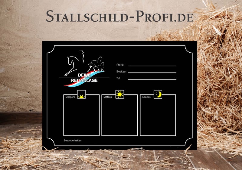 Gib der Pferdebox deines Lieblings eine persönliche Note mit einem individuell gestalteten Boxenschild. Bei Stallschild-Profi.de kannst du dein Schild ganz nach deinen Wünschen erstellen – mit eigenem Foto, Pferdenamen, Geburtsdatum, Abstammung, Stallnamen oder einem persönlichen Spruch. Wähle aus verschiedenen Designs, Schriftarten und hochwertigen Materialien wie Forex-Kunststoff, Hart-PVC, Alu-Dibond oder Acrylglas. So entsteht ein einzigartiges Namensschild für die Pferdebox, das nicht nur dekorativ ist, sondern auch wichtige Informationen über dein Pferd stilvoll präsentiert. Unsere Boxenschilder sind robust, wetterfest und perfekt für Stall, Reitanlage oder Turnierstall geeignet. ✔ Individuell gestaltbar mit Foto und Text ✔ Hochwertige, langlebige Materialien ✔ Verschiedene Größen und Designs ✔ Ideal für Stall, Pferdebox und Reitanlage ✔ Versandkostenfrei innerhalb Deutschlands Gestalte jetzt dein persönliches Boxenschild für dein Pferd ganz einfach online. 👉 www.stallschild-profi.de