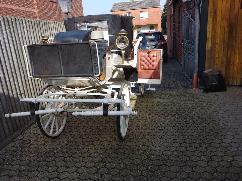 Zum Verkauf steht ein exklusiver, originaler Landauer der renommierten Hofwagenfabrik Schustala & Co, Wien. Diese elegante, weiße Hochzeitskutsche ist ein Meisterwerk historischer Stellmacherkunst aus der Zeit um Anfang 1900 und besticht durch ihre Leichtigkeit und zeitlose Ästhetik. Technische Details & Ausstattung: • Hersteller: Schustala & Co, Hofwagenfabrik Wien • Typ: Mittelgroßer, leichter Lederlandauer • Räder: Klassische Holzräder mit Vollgummibezug (vorne 0,90 m / hinten 1,10 m Durchmesser) • Bockhöhe: 1,60 m (für eine hervorragende Übersicht) • Kotflügel: 4 hochwertige Lederkotflügel • Anspannung: Inklusive passender Deichsel für den 2-spännigen Betrieb Interieur & Komfort: • Polsterung: Luxuriöse Innenausstattung aus antikrotem Echtleder in klassischer englischer Heftpolsterung. • Details: Sowohl die Sitze als auch die Türinnenseiten sind aufwendig gepolstert. • Flexibilität: Das Echtleder-Doppelverdeck lässt sich variabel nutzen – fahren Sie vollkommen offen, halb offen oder komplett geschlossen. • Besonderheit: Die Front- und Türscheiben sind voll versenkbar, was maximale Wandlungsfähigkeit bei jedem Wetter bietet. Zustand & Historie: Die Kutsche wurde in den letzten Jahren regelmäßig und zuverlässig für Hochzeitsfahrten eingesetzt. Gezogen wurde sie von Shagya-Arabern; sie eignet sich ideal für Pferde mit einem Stockmaß von ca. 1,60 m. Sie befindet sich in einem gepflegten, einsatzbereiten Zustand. Ein repräsentatives Schmuckstück für Hochzeitsdienstleister, Sammler oder Traditionsfahrer, die Wert auf Wiener Kutschenbau-Geschichte legen.