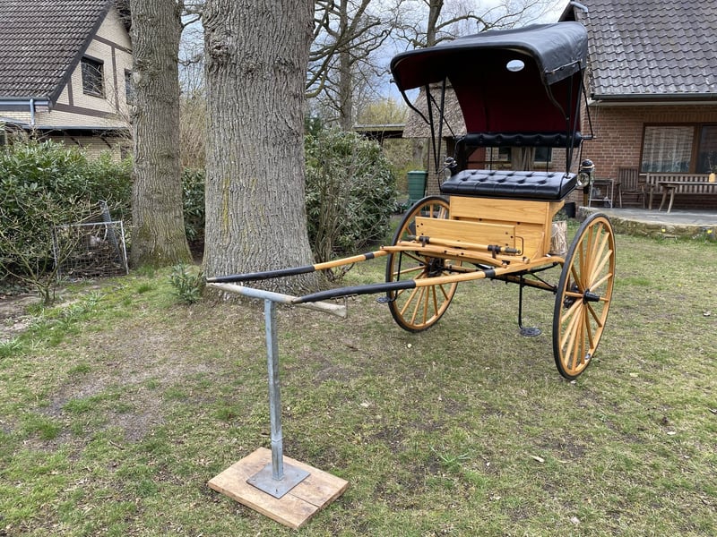 For sale is a beautiful, lightly used Ladies Cart (American Buggy) for single driving, built in 1991 by Lars Micheelsen. The carriage impresses with its elegant appearance and high-quality craftsmanship: Shaft and wheels made of fine hickory wood Beautiful carriage lamps Technically in very good condition Suitable for horses up to approximately 150 cm in height Perfect for leisure drives, competitions, or simply as a stylish eye-catcher for lovers of classic carriages. Location: 27389 Fintel Viewing possible at any time Price negotiable within reason