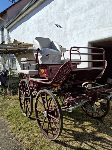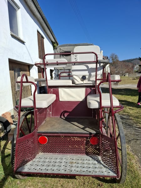 Kutschenliebhaber gesucht! Für unsere Marathonkutsche der Marke Kibele suchen wir einen neuen Besitzer, der viel Freude daran hat. Die Kutsche ist schon älter, wurde jedoch wie man auf den Bildern sehen kann kaum benutzt und ist daher noch in wirklich gutem Zustand. Sie ist turniergerecht ausgestattet, das heißt sie hat ein Leergewicht von 385 kg, was bedeutet auf einem Turnier müssen keine Bleiplatten eingesetzt werden, um zu starten. Natürlich kann die Kutsche aber auch im Straßenverkehr und zu Freizeitzwecken genutzt werden. Sie hat vorne sowie hinten Scheibenbremsen und ist mit einer Lenkverzögerung ausgestattet. Es handelt sich derzeit um Gummireifen, die kaum abgefahren sind, Ballonreifen könnten aber jederzeit nachgerüstet werden. Wir verkaufen die Kutsche inklusive einer Schwebedeichsel und einer Einspännergabel (Neuwert 800€), das heißt sie kann sowohl ein- als auch zweispännig gefahren werden. Von der Marke Kibele gibt es zudem einen Aufsatz, der an die Schwebedeichsel angebracht werden kann, um sie auch vierspännig zu fahren. Diesen Aufsatz verkaufen wir jedoch nicht mit. Die Kutsche ist 1,35m breit und 2,10 lang und kann jederzeit gerne besichtigt werden. Da sie in den letzten Jahren leider keine Verwendung mehr hatte, würden wir uns sehr freuen, wenn jemand Interesse daran hat, ihr einen neuen Zweck zu geben. Sie wurde von Pferden zwischen 1,50-1,75m gezogen. Sie eignet sich jedoch vor allem für Pferde ab 1,60m.