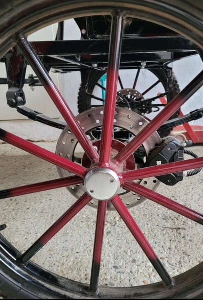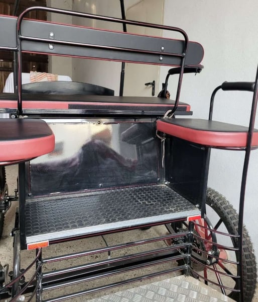 Verkaufe neuwertige Kutsche wegen Umstieg auf einen Gig. Sie wurde für einen Tinker mit einem Stockmass von 1,40m gekauft. Spurbreite 1,24m Bockhöhe 1,17m ohne Bocksitz Scheibenbremsen vorne und hinten und natürlich eine Feststellbremse. Räder 23 Zoll hintere Sitzbänke 50cm Preis verhandelbar Privatverkauf daher keine Gewährleistung keine Garantie und keine Rücknahme