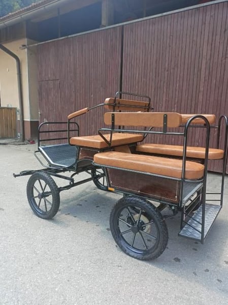 New Pony Carriage Available Available is a new pony carriage with 16" wheels (2.75), seat covers in artificial leather, wooden panels, in brown colour. Suitable for single or pair of horses.. PRICE: 2400,00 € + VAT For more information: Email: info@vprege-repnik.si Phone: +386 40 984 220 / +386 40 705 868 Website: www.vprege-repnik.si