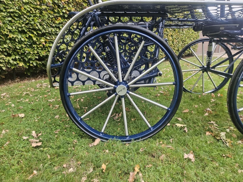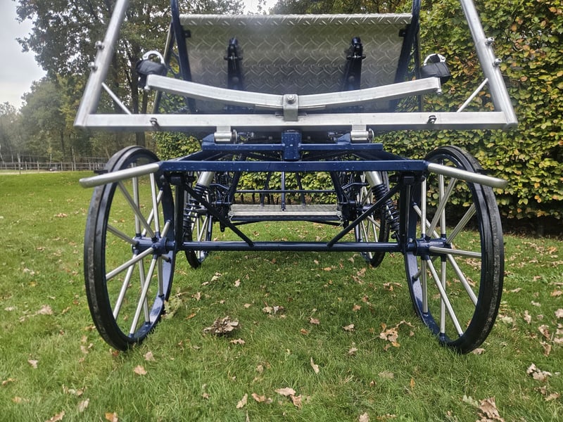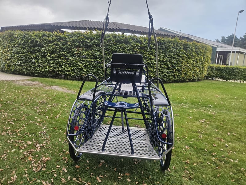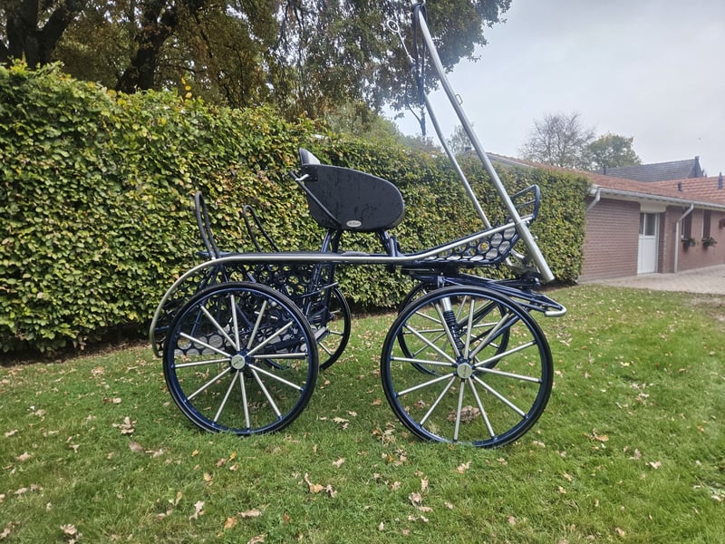 Very complete and almost new single-seater marathon carriage. The carriage is fully prepared for international competitions, equipped with track wideners for the rear axle and a dressage seat. Options: ▪️Extendable axle ▪️Rear steering/steering delay ▪️Stainless steel exterior and wheel spokes ▪️Molen brake ▪️Solid rubber wheels, 80 cm ▪️Weight blocks, extendable, 40 kg ▪️Dressage seat ▪️Track wideners ▪️Modified suspension for a more stable ride ▪️Year of manufacture: April 2024 This carriage is ideally suited for a large pony or horse. Available around December. For inquiries, texting or calling is the quickest: 📞+31 6 81378185