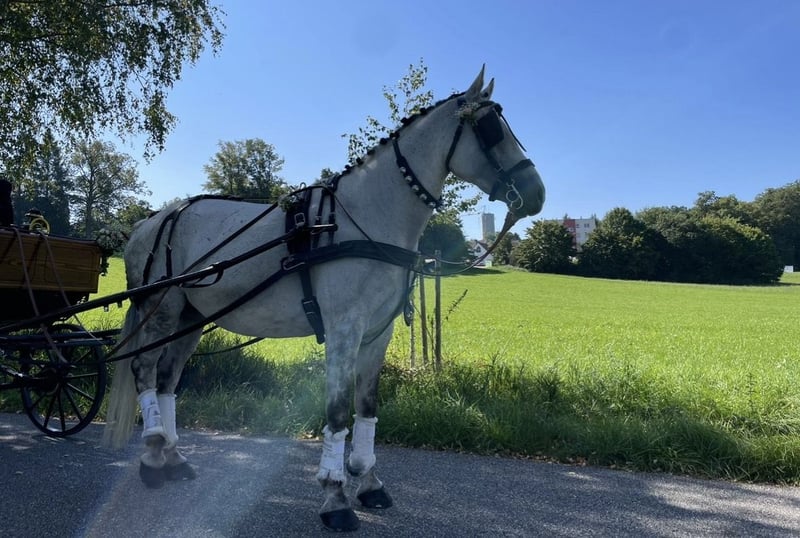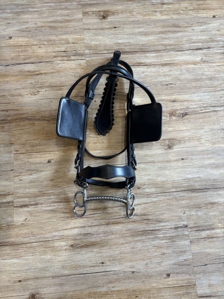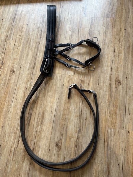 Lederfarbe: schwarz Größe: Warmblut Ca. 3x benutzt, wie neu. Frisch eingefettet. Hochwertige Lederverarbeitung. Mit inbegriffen ist: Kopfgestell mit Scheuklappen, Postkandare, 13,cm, Sprenger, Fahrleine, braun, Brustblatt inkl. Zugstränge, Bauchgurt, Selett, Schweifmetze, Hintergeschirr, Verbindungsstück Versicherter Versand im Preis inklusive.