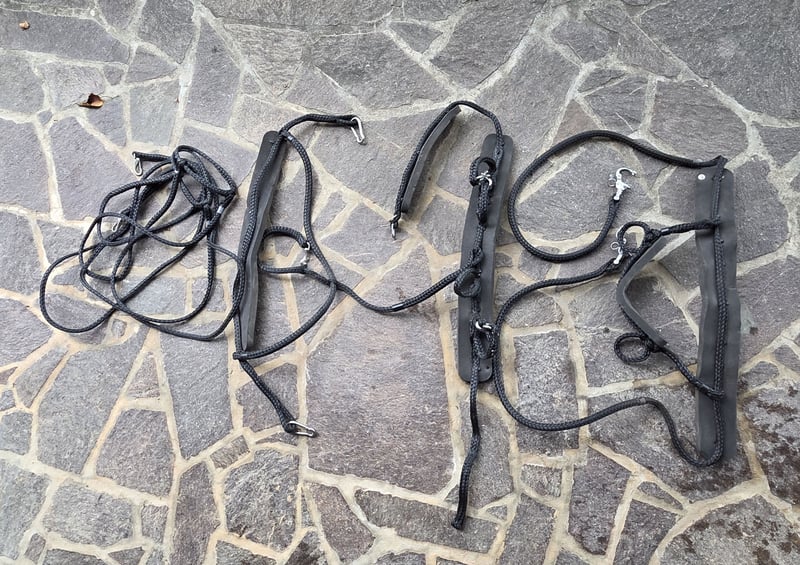 Sieltec Pur Einspännergeschirr in Größe 2 schwarz mit zusätzlichem Zubehör: - Standard-Pur Brustblattgeschirr mit zusätzlichem Halsriemenpolster - Selett mit einseitiger Schnallung mit zusätzlichem Bauchgurtpolster - Hintergeschirr für Pony mit Polster für Hintergeschirr als Zusatzteil - Längenverstellbarer Sieltec-Fahrleine mit Doppelendschlaufen (Griffe) für Pony - Zusatz: Schnellverschlüsse mit Schläkel an den Zugsträngen für eine verbesserte Sicherheit, um die Zugstränge schnell von der Kutsche lösen zu können - Zusatz: Die Schnallen an den Trageösen wurden durch Karabiner mit Schraubschläkel ersetzt, um die Trageösen im Notfall schneller öffnen zu können Für eine verbesserte Wirbelsäulenfreiheit wurde bei dem Selett das untere Polster im Bereich der Wirbelsäule ausgeschnitten. Dies kann aber bei Bedarf durch ein neues Polster ersetzt werden. Privatverkauf, keine Garantie oder Rücknahme.