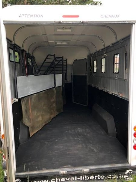 chargement diagonal pour 3 chevaux. Plancher et parois en aluminium garantie 5 ans, Pont avant, Pont porte arrière, Poids à vide : 1 280 kgs PTAC : 1600 kgs à 3000 kg Pneus : 185/70R13C