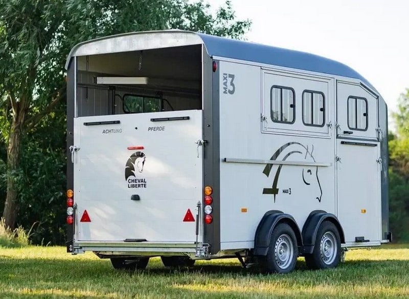La Cheval Liberté Maxi 3 est une remorque conçue pour transporter jusqu’à 3 chevaux en diagonale. Elle offre un espace intérieur généreux, un aménagement modulable et des équipements pensés pour assurer à la fois la sécurité des chevaux et le confort de l’utilisateur. Elle est équipée d’une sellerie intégrée et d’une rampe latérale facilitant le déchargement.