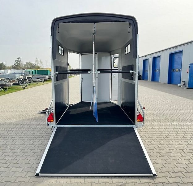 📧 E-mail: contact@valta-trailers.com 📱 Téléphone: +33 7 80 93 44 95 Remorque robuste et spacieuse pour deux grands chevaux (1,70 m et +), équipée d’une rampe avant, d’une sellerie intégrée, d’une coque polyester renforcée, et d’un plancher aluminium de 25 mm. Elle offre confort, sécurité et praticité pour les cavaliers exigeants. La Touring Country XL de Cheval Liberté est conçue pour le transport de deux chevaux de grande taille dans un environnement confortable, bien ventilé et sécurisé. Elle est équipée d’un pont avant large avec hayon et fenêtre, d’une sellerie fonctionnelle, d’une suspension Pullman 2 pour une excellente tenue de route, et de matériaux durables comme l’aluminium et le polyester renforcé. Principaux équipements de série : Suspension Pullman II (ressorts, amortisseurs) pour une conduite souple et stable Rampe avant large (1,10 m) avec hayon et fenêtre pour un déchargement fluide Coque monobloc en polyester aérodynamique et toit renforcé Plancher en aluminium 25 mm d’épaisseur, recouvert d’un tapis caoutchouc 8 mm Parois latérales en aluminium de 18 mm Pont/porte arrière avec bâche à enrouleur automatique Porte latérale cavalier avec fenêtre Système antipanique sur les barres avant et arrière Sellerie intégrée avec espace pour deux selles 4 barres réglables (hauteur et longueur) pour adapter l’espace à des chevaux de 1,70 m et plus Séparation centrale articulée avec grille de tête et plaque ABS occultante amovible Pare-bottes composites et coussins latéraux pour plus de confort 4 fenêtres coulissantes avec déflecteurs à l’avant pour une ventilation optimale Éclairage intérieur avec interrupteur Cadre arrière en aluminium, ouvert latéralement Roues 185/65 R14 sur 2 essieux freinés Kliny – 2 cales de stationnement fournies Certificat d’homologation CE, garantie constructeur 2 ans, service après-vente et livraison possibles Dimensions extérieures : Longueur : 4,97 m Largeur : 2,28 m Hauteur : 2,72 m Dimensions intérieures : Longueur : 3,69 m Largeur : 1,79 m Hauteur : 2,40 m Poids : Poids à vide : 935 kg PTAC : 2600 kg Charge utile maximale : 1665 kg.