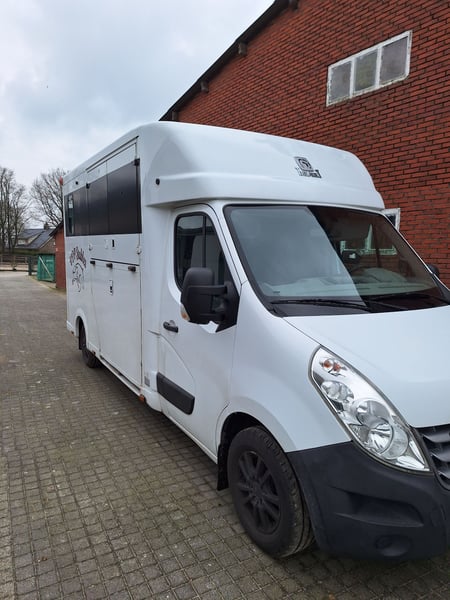 Theault 2 chevaux 3 places Renault Master avec exécution Proteo pour étalons ! Très bonne construction, robuste, sûre et fiable. Double portes à l'arrière, très pratique pour la remorque à chevaux. Bien entretenu chez le garagiste avec des contrôles et réparations effectués tous les 20 000 km. APK APPROUVÉ JUSQU'EN FÉVRIER 2026, ce véhicule n'est vendu qu'à un prix approprié, donc ce n'est pas une bonne affaire. Le prix demandé est un prix indicatif pour ce véhicule très sûr et fiable pour deux chevaux. Les offres sont les bienvenues, mais aucune réponse ne sera donnée aux offres ridicules. - Néerlandais - Voiture TVA - 02/2014 - 345 000 km - Manuelle 150 ch - Attelage - Vitres et rétroviseurs électriques - Climatisation - Régulateur de vitesse - Double portes arrière - Système de ventilation électrique dans la partie chevaux - Crochets pour licou - Supports de selle - Éclairage - Cloison amovible - Chargeur latéral - Système de caméra - Compartiment de rangement au-dessus de la cabine avec portes - Voiture TVA