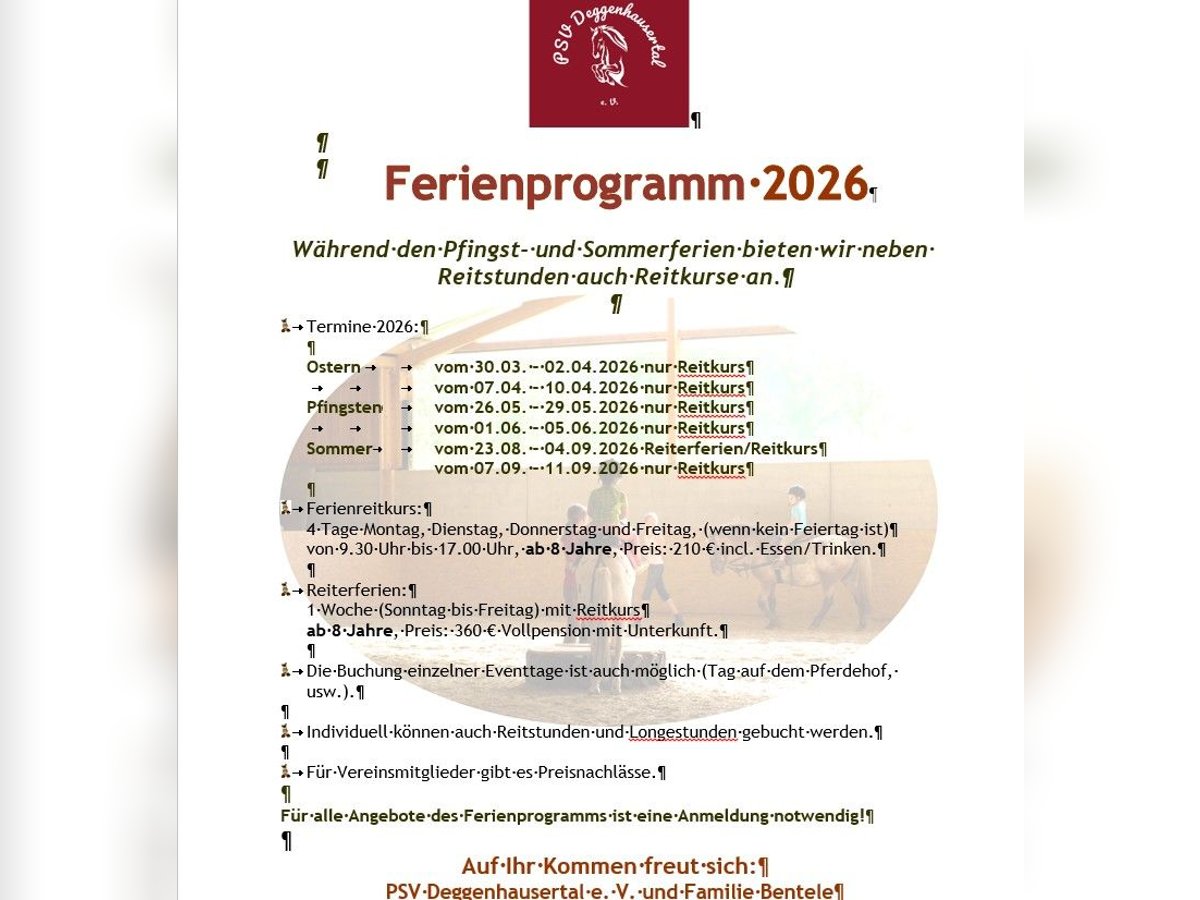 vom 07.04. – 10.04.2026 nur Reitkurs