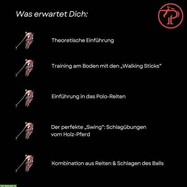 Tauche ein in die faszinierende Welt des Polosports und erlebe eine exklusive 3-stündige Einführung in eine der spannendsten Teamsportarten der Welt ⚡️ Ideal für Einsteiger – keine Vorkenntnisse erforderlich. Das erwartet dich: • Theoretische Einführung in den Polosport • Training am Boden mit den „Walking Sticks“ • Einführung ins Reiten und sicheres Beherrschen des Pferdes • Der perfekte „Swing“: Schlagübungen vom Pferd • Kombination aus Reiten und gezieltem Schlagen des Balls 🔥 Begrenzte Teilnehmerzahl: Nur 4 Personen pro Kurs – persönliche Betreuung garantiert! ⏳ Schnell sein lohnt sich: Die letzten Plätze sind fast ausgebucht. Dauer: 🕒 3 Stunden Durchführungsort: Polo Club Ettikoner Hof Preis: 🎟️ Spezialangebot für Frühbucher bis zum 31.01.2026: CHF 180.00 pro Person Erlebe Polo aus nächster Nähe und entdecke deine neue Leidenschaft! 🐎🏆