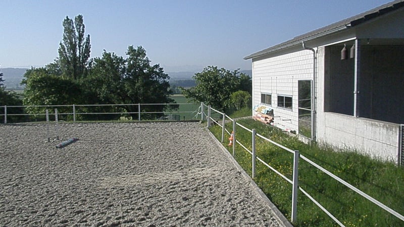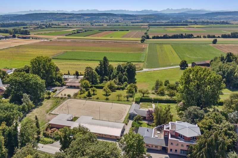 In the midst of one of the best riding and driving regions near Avenches, this unique opportunity awaits you: the beautiful, discreet facility with 8 to 16 boxes (or part as a free-range stable), the sand arena measuring 52m x 26m (CHLORONAG) creates the best conditions for future-oriented business concepts. Pastures, a treadmill, a 20m round pen, a rider's lounge, a terrace with panoramic views, a seminar room, and everything else that a rider or driver’s heart desires! Ideal for ambitious equestrians, veterinarians, and horse lovers – here you can realize your vision. A residential apartment is included, offering proximity to the stable and privacy at the same time. Available: by arrangement Prime location – directly in nature, fields, or forest Inquire now and take a look. Contact Urs directly at 076 337 54 16 www.pferdeseminare.ch