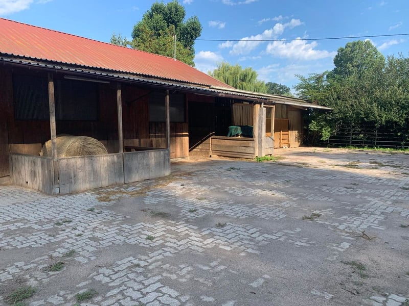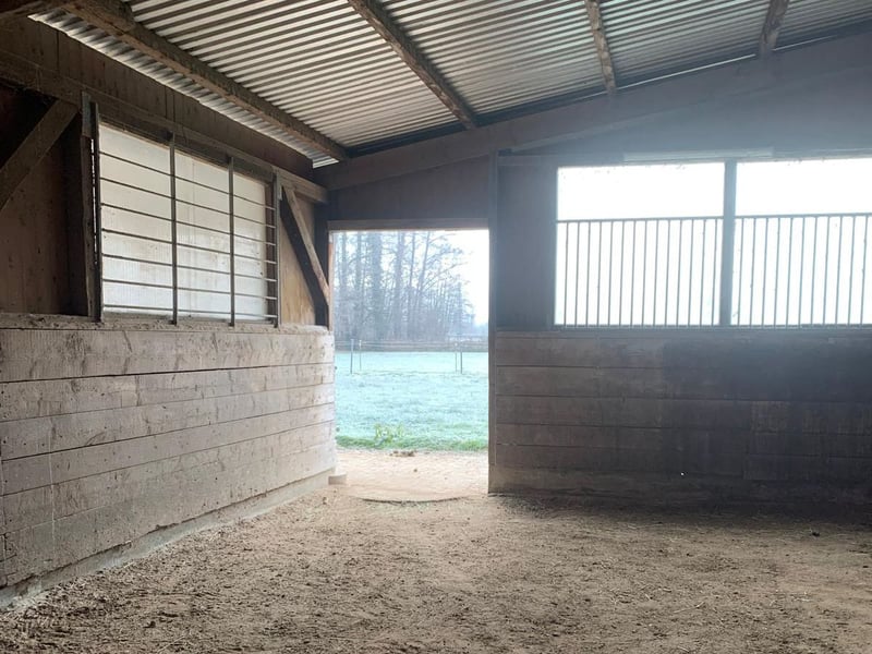 Seltene Gelegenheit in Karlsruhe! Das Anwesen mit einer Grundstücksfläche von 51.258,00 m² befindet sich inmitten eines idyllischen Weilers mit insgesamt 7 Bauernhöfen. Das Wohngebäude verfügt derzeit über 2 separate Wohnungen mit einer Gesamtwohnfläche von rund 177 m². Der "Hausstall" besteht aus mehreren großzügigen Paddockboxen sowie einem Offenstall mit direkt angrenzendem Paddock und Weiden. Auf dem Anwesen befindet sich zudem ein weiterer, separater, großer Offenstall, an den ebenfalls Paddocks und Weiden angrenzen. Neben dem 20x40 Reitplatz (Sand) befindet sich eine Koppel mit einer Größe von ca. 4 ha, die über einen Unterstand und Tränken verfügt. Der Hof muss weiterhin landwirtschaftlich geprägt bleiben. Bestehende Pachtverträge können übernommen werden.