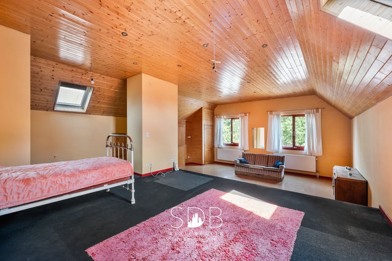 In the province of East Flanders, in Destelbergen, we present this contemporary villa with pastures on a 7,496 m² plot. A suburb of Ghent, ideally located with excellent connections and major access roads, such as the E17 and E40. An excellent combination of urban amenities and rural tranquility. We enter the property through the spacious entrance hall. What immediately stands out in this home are the fully proportioned, generous living spaces filled with natural daylight. Adjacent to the entrance is a living/dining area, connected via a stylish glass door to the bright living room featuring a characterful fireplace and a separate seating area. The modern, fully equipped kitchen offers all necessary facilities. From the kitchen, you have direct access to the terrace—perfect for summer aperitifs. These ground-floor living areas provide beautiful views of the garden and the surrounding greenery, namely the pastures behind the property. On the same level, there is also a large, versatile room that can be used as desired. Additionally, there is a bathroom fitted with a single washbasin unit and a bathtub. A second bathroom is also available, equipped with a single washbasin, a shower, and a bathtub. On the first floor, there are four fully functional bedrooms. This level also features a bathroom with a single washbasin, a shower, and a bathtub. The upper floor offers potential to be converted into a separate living unit or loft, as it has a dedicated entrance directly connected to this level. The living spaces are spacious enough to accommodate this, while maintaining privacy and comfort. The property includes four indoor garages and additional parking spaces at the front. Outside, you will find the family garden with surrounding greenery and enclosed pastures, designed with a stable for housing animals and/or horses. These pastures are ideal for animal lovers who wish to keep their animals or horses close by. From the house, you can enjoy watching your animals graze. Given the size of this property, it is well-suited to accommodate multiple families or blended households. It could also serve as co-housing or a care home. Notable features include technical amenities such as an alarm system, automatic shutters, and a heat pump. Interested in this contemporary villa where peace, nature, and adjoining pastures come together? Don’t hesitate to contact us. We’d be happy to tell you more! www.sdb.realestate