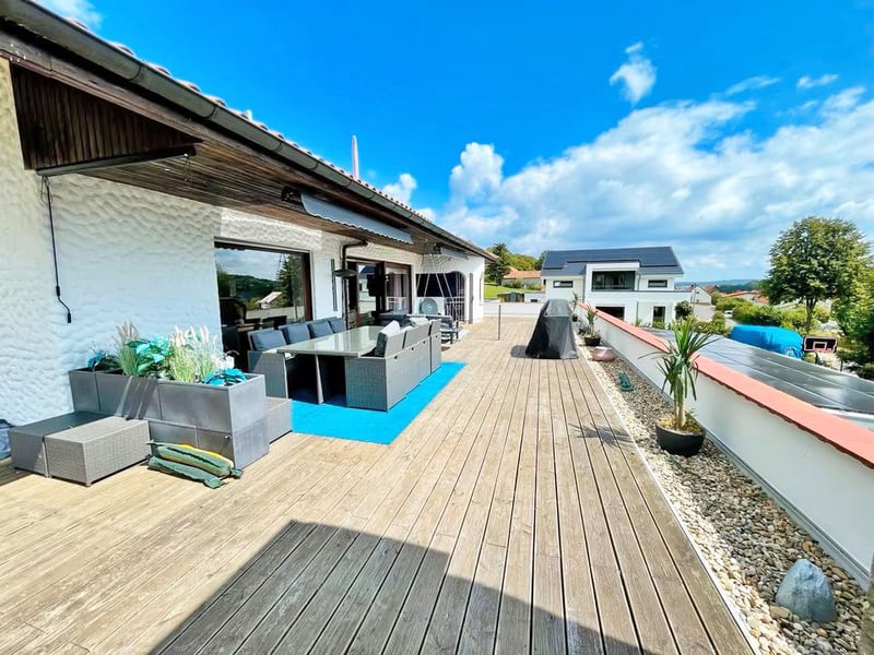 Inmitten der reizvollen Landschaft Osthessens, im Landkreis Fulda, befindet sich dieses außergewöhnlich großzügige private Anwesen in ruhiger Ortsrandlage. Das weitläufige Grundstück mit über 28.000 m² bietet ideale Voraussetzungen für Pferdehaltung, Tierliebhaber und Menschen, die ein hohes Maß an Platz, Komfort und Privatsphäre schätzen, ohne auf eine gute Anbindung verzichten zu müssen. Das Anwesen wird durch ein äußerst großzügiges Wohnhaus aus dem Baujahr 1978 geprägt, das laufend modernisiert und technisch auf einen sehr hohen Standard gebracht wurde. Mit rund 330 m² Wohnfläche sowie zusätzlichen ca. 240 m² Nutzfläche bietet das Haus ein außergewöhnliches Raumangebot und überzeugt durch moderne Haustechnik, zeitgemäße Ausstattung und zahlreiche komfortable Ausstattungsdetails. Eine separate Einliegerwohnung im Dachgeschoss mit eigener Dachterrasse eröffnet vielfältige Nutzungsmöglichkeiten, etwa für Gäste, Mehrgenerationenwohnen oder zur teilweisen Vermietung. Die Raumaufteilung ist klar strukturiert und funktional gestaltet: Im Untergeschoss stehen mehrere Zimmer, Mehrzweckräume sowie Bäder zur Verfügung, die sich ideal für Hobby, Wellness oder Fitness eignen. Das Erdgeschoss bildet mit großzügigen Wohn- und Essbereichen, Küche und Nebenräumen den zentralen Lebensmittelpunkt. Das Dachgeschoss ergänzt das Raumangebot um weitere Zimmer sowie eine vollwertige Wohneinheit. Für Pferdehalter bietet das Anwesen hervorragende Bedingungen. Ein ca. 180 m² großer Offenstall für etwa fünf Pferde, Heulager, Mistplatz sowie weitläufige Wiesenflächen schaffen optimale Voraussetzungen für eine artgerechte Tierhaltung. Ein Reitplatz, der derzeit als Fußballplatz genutzt wird, sowie ein 18 m Roundpen sind ebenfalls vorhanden. Abgerundet wird das Angebot durch eine außergewöhnlich umfangreiche Infrastruktur: Doppelgarage, mehrere Carportstellplätze, separate Garagen für Motorrad und Fahrräder, Werkstatt, Außenpool, Sauna- und Fitnessbereich sowie Videoüberwachung. Ein bestehender Innenpool kann bei Bedarf mit geringem Aufwand wieder in Betrieb genommen werden. Weitere Nebengebäude wie Hundezwinger oder Hühnerstall unterstreichen die Vielseitigkeit dieses Anwesens. Dieses Anwesen vereint ländliche Ruhe, moderne Wohnqualität und professionelle Voraussetzungen für Tierhaltung und Freizeitgestaltung und bietet damit ein außergewöhnliches Gesamtpaket in attraktiver Lage. ________________________________________ Daten & Fakten auf einen Blick: •Lage: Osthessen, Landkreis Fulda, 36154 Hosenfeld / Jossa •Grundstück: ca. 28.109 m² •Wohnfläche: ca. 330 m² •Nutzfläche: ca. 240 m² •Baujahr: 1978 Besonderheiten Wohnen: oEinliegerwohnung im Dachgeschoss mit Dachterrasse oSehr moderne Ausstattung und Haustechnik oUmfangreiche Neben- und Funktionsräume Raumaufteilung: oUntergeschoss: -3 Zimmer -2 Mehrzweckräume -2 Bäder -1 WC oErdgeschoss: -2 Zimmer -Wohnzimmer -Esszimmer -Küche -Hauswirtschaftsraum -1 Bad -1 WC oDachgeschoss: -2 Zimmer -Wohn- / Esszimmer -Küche -Hauswirtschaftsraum -Bad Pferdehaltung & Außenanlagen: oOffenstall ca. 180 m² für ca. 5 Pferde oHeulager oMistplatz oReitplatz (derzeit als Fußballplatz genutzt) o18 m Roundpen Stellplätze & Nebengebäude: oDoppelgarage o4 Carportstellplätze oMotorradgarage oFahrradkeller oWerkstatt Freizeit & Sonstiges: oAußenpool oSauna- und Fitnessraum oInnenpool vorbereitbar oHundezwinger bzw. Hühnerstall oVideoüberwachung .................. Sonstige Hinweise: Dieses Objekt bieten wir in Kooperation mit einem unserer Netzwerk-Makler an. Mit Ihrer Kontaktanfrage akzeptieren Sie, dass Sie sich für dieses Objekt interessieren und ein Expose von unserem Netzwerk-Makler anfragen. Ebenso bestätigen Sie die Provisionsvereinbarungen zwischen unserem Netzwerk-Makler und Ihnen, die im Falle eines notariell bestätigten Kaufvertrages rechtskräftig werden. Ebenso bestätigen Sie, dass wir berechtigt sind, Ihre Kontaktdaten an den Netzwerk-Makler weiterzuleiten. -------------------- Lage: Das Anwesen befindet sich in Osthessen, im Landkreis Fulda, in der Gemeinde Hosenfeld, Ortsteil Jossa. Die Lage am ruhigen Ortsrand verbindet naturnahes Wohnen mit einer sehr guten Erreichbarkeit und gewachsener Infrastruktur. Umgeben von Wiesen und Feldern bietet das Grundstück viel Ruhe, Freiraum und Privatsphäre, ohne vollständig abgeschieden zu sein. Die Verkehrsanbindung ist als gut zu bezeichnen. Über die umliegenden Land- und Kreisstraßen besteht eine schnelle Verbindung in die umliegenden Orte sowie in die Kreisstadt Fulda, die in kurzer Fahrzeit erreichbar ist. Fulda bietet neben einem ICE-Bahnhof eine hervorragende Anbindung an das überregionale Verkehrsnetz sowie eine umfassende Infrastruktur mit Kliniken, weiterführenden Schulen, Hochschulen, Einkaufsmöglichkeiten und kulturellen Angeboten. Die Autobahnen A7 und A66 sind ebenfalls zügig erreichbar und ermöglichen eine schnelle Anbindung in Richtung Frankfurt am Main, Kassel und Würzburg. Einkaufsmöglichkeiten, Ärzte, Schulen und Kindergärten befinden sich sowohl in Hosenfeld als auch in den angrenzenden Gemeinden und sind bequem mit dem Auto erreichbar. Die Kombination aus ruhiger Ortsrandlage, großzügigen Flächen und guter verkehrlicher Anbindung macht diese Lage besonders attraktiv für Familien, Pferdehalter, Selbstständige und Pendler, die ländliche Ruhe mit urbaner Erreichbarkeit verbinden möchten.