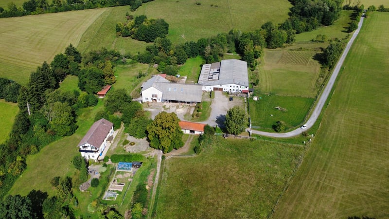 Bitte füllen Sie das nachfolgende Kontaktformular vollständig aus bevor Sie uns telefonisch kontaktieren. Vielen Dank für Ihr Verständnis! Reitanlage im Harz in Bad Sachsa zu verkaufen – Idyllische Alleinlage mit knapp 13 Hektar Land im Eigentum! Objektbeschreibung: Zum Verkauf steht ein großzügiger Aussiedlerhof in idyllischer Alleinlage von Bad Sachsa im Südharz. Die Liegenschaft umfasst ein arrondiertes Grundstück von ca. 127.209 m² direkt am Hof und bietet ideale Voraussetzungen für Tierhaltung, Zucht oder ein nachhaltiges Selbstversorgerkonzept in naturnaher Umgebung. Ein besonderes Highlight ist der eigene große Teich auf dem Grundstück sowie zahlreiche Obstbäume und großzügige Gemüseanbauflächen, die das Anwesen ideal für eine autarke Selbstversorgung machen. Das zweigeschossige Wohnhaus wurde 1968 in solider Massivbauweise errichtet und verfügt über eine Gesamtwohnfläche von ca. 287,76 m². Im Souterrain befindet sich zudem eine genehmigte Gewerbeeinheit, wodurch sich Wohnen und Arbeiten optimal kombinieren lassen. Die Beheizung erfolgt über eine Öl-Heizung aus dem Jahr 2021. Die solide Bausubstanz bietet die Möglichkeit, das Haus nach eigenen Wünschen zu renovieren und zu sanieren, erfordert jedoch altersbedingt bereits einige anstehende Modernisierungs- und Instandsetzungsarbeiten – ideal für handwerklich versierte Käufer mit Vision. Die Hofstelle umfasst zahlreiche Nebengebäude mit vielseitigen Nutzungsmöglichkeiten. Das Stallgebäude aus den 1960er Jahren bietet derzeit mehrere alte Pferdeboxen und Laufställe, die für Rinder genutzt werden. Die Dachflächen bestehen überwiegend aus asbesthaltigen Faserzement-Wellplatten. Ein Highlight ist die Reithalle (ca. 20 x 40 m), die ursprünglich 1969 errichtet und 1994 erweitert wurde. Sie verfügt über eine angrenzende ehemalige Stallgasse mit Ausbaureserve, einen Sandboden sowie einen angeschlossenen Kopfbau. Dieser wurde umgebaut und beherbergt heute eine Hundepension mit Platz für bis zu 10 Hunde, inklusive separater Räume, Küche und Sanitäranlagen. Zusätzlich steht ein ehemaliger Reitplatz mit Sandboden zur Verfügung, ein Maschinenunterstand, eine Wagenremise, eine Werkstatt sowie ein großzügiges Heulager & eine Mistplatte. Diese Immobilie bietet eine seltene Gelegenheit für Tierhalter, Selbstversorger, Handwerker oder Investoren mit viel Platz und Entwicklungspotenzial in ruhiger Alleinlage. Ausstattung: Wohnhaus: - Baujahr: 1968 (Bauschein liegt vor), 2003 Anbau des Kellergeschosses - Wohnfläche: 287,76 m² - Gewerbeeinheit im UG (Nutzungsänderung aus 2012 liegt vor, Tattoostudio) - Heizung: Öl-Heizung aus 2021 - Bauweise: Massivbauweise, Fachwerk - Fenster: Kunststoff, Doppelverglasung - Boden: Fliesen, Laminat, PVC, Stein, Teppich - Balkon-PV-Anlage mit 2 x 0,6 kWp - Garage für 3 Fahrzeuge in eigenem Gebäude mit Fenstern und Stromanschluss Hinweis: Die Immobilie ist teilweise sanierungsbedürftig. Es gibt zwei Brunnen zur Wasserversorgung und ein Drei-Kammer-System als Abwasser-Lösung. Stallungen: - Baujahr Gebäude 1961, 1967 Erweiterung Pferdestall (Bauschein Kuhstall und Wagenschuppen aus 1961 – 1963) - Boxen derzeit: 8 Innenboxen, 5 Fensterboxen (es werden keine Pferde mehr auf dem Hof gehalten) - Ausbaufähig, momentan genutzt für große Laufställe (Rinder) - Dach: asbesthaltige Faserzement-Wellplatten - Bauweise: Massivbauweise und Holzfachwerk, Geschossdecke ist eine massive Stahträgerdecke - Fassade: teils verputzt, teils asbesthaltige Faserzement-Wellplatten Reithalle: - Baujahr: 1969 (Gebaut als Mehrzweckhalle mit Pferdestall), 1994 Erweiterung zur Reithalle mit Clubraum (Reiterstube) und Pferdestall - Reitmaß ca. 20 x 40 Meter - Boden: Sandboden - Angrenzende Stallgasse (leer, eignet sich für den Wiedereinbau von Boxen) - Fenster: überwiegend mit einfacher Verglasung, tlw. Holzfenster mit Doppelverglasung - Dach: flachgeneigtes Satteldach aus Stahlträgerkonstruktion mit asbesthaltigen Faserzement-Wellplatten Kopfbau der Reithalle: - Die Reiterstube wurde umgebaut zur Hundepension - Erdgeschoss: Reithalle, separater Bereich (Reiterstube) mit Clubraum, 2 WC’s, Küche, Treppenhaus, Flur - Obergeschoss: Pensionsplätze für 10 Hunde Alter Reitplatz hinter der Halle: - Baujahr unbekannt - Reitmaß ca. 20 x 40 Meter - Boden: Sand (komplett grün zugewachsen!!) - Einzäunung vorhanden Weiteres: - Großes Heulager für Rundballen über den Stallungen - Offenstall für Kleinpferde (derzeit Zwergzebus) - Werkstatt - Mistplatte (genehmigt & überdacht) - Wagenremisen als Anschleppung an Stall & Reithalle - Es können 27 Zwergzebus (Fleischrinder) vom Eigentümer übernommen werden Lage: Bad Sachsa ist eine charmante Kleinstadt in Niedersachsen am Südrand des Harzes im Landkreis Göttingen, rund 50 km östlich von Göttingen und etwa 20 km nordwestlich von Nordhausen. Die Lage ist ruhig und naturnah, zugleich besteht über die Bundesstraße B243 eine gute Anbindung an die A38 Autobahn (ca. 20–30 Minuten) sowie die A7 Autobahn (ca. 40–50 Minuten). Städte wie Hannover sind so in etwa 60 bis 90 Minuten erreichbar; der nächstgelegene größere Flughafen ist der Flughafen Hannover-Langenhagen, der ebenfalls rund 1,5 Stunden Fahrzeit entfernt liegt. Das Leben in Bad Sachsa zeichnet sich durch eine sehr gute Balance aus ruhigem, naturnahem Wohnen und einer funktionierenden Grundversorgung im Alltag aus. Die Kleinstadt bietet alle wichtigen Einrichtungen des täglichen Bedarfs direkt vor Ort. Für den Einkauf stehen mehrere Supermärkte, Bäckereien sowie kleinere Fachgeschäfte zur Verfügung. Ergänzt wird das Angebot durch lokale Dienstleister, Apotheken und gastronomische Betriebe, die das tägliche Leben angenehm und praktisch gestalten. Auch im Bereich Bildung und Betreuung ist Bad Sachsa gut aufgestellt. Es gibt Kindertagesstätten sowie Grund- und weiterführende Schulen im Stadtgebiet bzw. in direkter Umgebung. Ergänzend dazu bietet die Umgebung zahlreiche