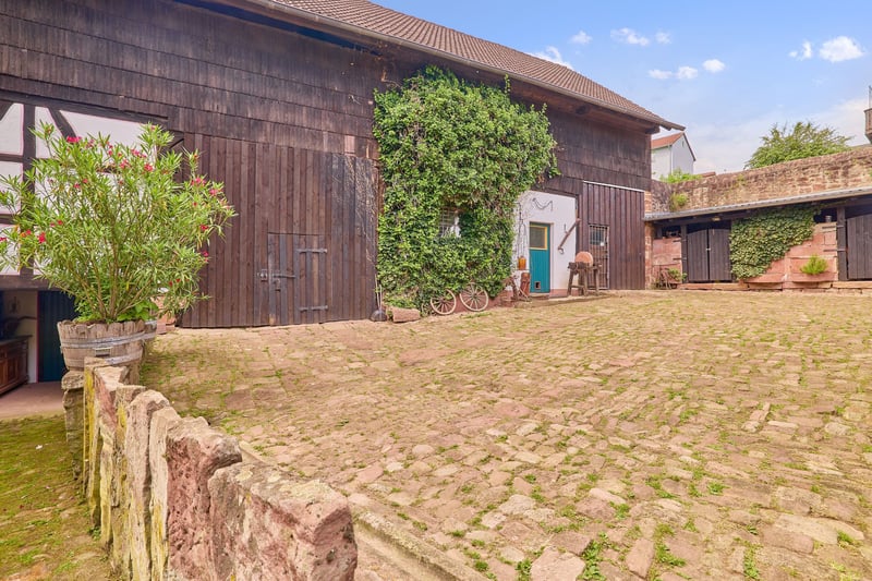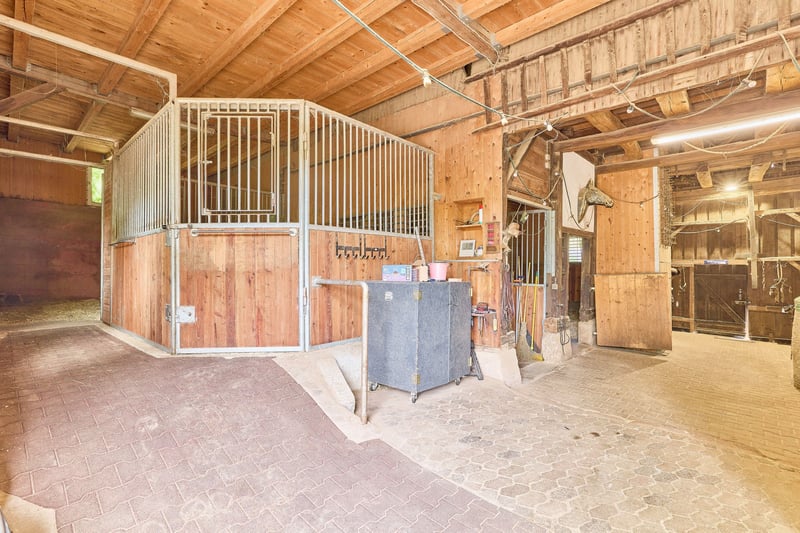 Bitte füllen Sie das nachfolgende Kontaktformular vollständig aus bevor Sie uns telefonisch kontaktieren. Vielen Dank für Ihr Verständnis! Pferdeimmobilie im Odenwald zur privaten und exklusiven Pferdehaltung! Objektbeschreibung: Wir freuen uns, Ihnen dieses äußerst gepflegte und liebevoll gestaltete Hofensemble in Erbach im Odenwald präsentieren zu dürfen. Das Anwesen erreichen Sie über eine private Hofzufahrt mit hochwertigem Tor. Hinter der Einfahrt öffnet sich ein romantischer Innenhof, der den besonderen Charme und die Ruhe dieses Anwesens widerspiegelt. Die Hofanlage bietet ideale Voraussetzungen für die private Pferdehaltung: Ein Reitplatz mit den Maßen 19 × 48 Meter, ausgestattet mit Flutlichtanlage und massiver Umzäunung, ermöglicht flexibles Training. Für Ihre Pferde stehen fünf großzügige, helle Boxen mit beheizbaren Tränken, sehr große Paddockflächen mit Offenställen sowie angrenzende Weideflächen zur Verfügung. Das Scheunengebäude bietet nicht nur Platz für Heu- und Strohlagerung, sondern auch eine beheizte Sattelkammer. Die Gesamtfläche des Anwesens beträgt 9.499 m² – ein weitläufiges Grundstück, das Mensch und Tier gleichermaßen Raum zur Entfaltung bietet. Ein gewachsener Baumbestand spendet natürlichen Schatten und verstärkt das naturnahe Ambiente. Ein weiteres Grundstück mit rund 1.500 m² Fläche kann angrenzend erworben werden, ebenso gibt es die Option weitere Koppeln zu pachten. Das Wohnensemble umfasst insgesamt ca. 447 m² Wohnfläche, verteilt auf zwei Gebäude. Das Haupthaus (Einfamilienhaus) wird derzeit zu privaten Wohnzwecken genutzt. Das Nebengebäude beherbergt aktuell eine Wohneinheit sowie einen gewerblich genutzten Bereich mit Lager- und Büroräumen. Ursprünglich als zwei separate Wohneinheiten konzipiert, lässt sich diese Nutzung problemlos wiederherstellen. Ein liebevoll angelegter Garten mit Fischteich, finnischem Grillhaus und einer Wellness-Terrasse rundet das Angebot ab und macht das Anwesen zu einem Ort mit hoher Lebensqualität. Vereinbaren Sie gerne einen Besichtigungstermin – dieses besondere Anwesen vereint Lebensqualität, Funktionalität und eine enge Verbindung zur Natur auf eindrucksvolle Weise. Ausstattung: Haupthaus (Einfamilienhaus): - Fischteich im Garten, große und gemütliche Terrasse, Grillhaus im Garten - Vollständig renoviert, großrahmige Steinfliesen, aufgesetzte Natursteine als optisches Highlight - 2 Kaminöfen, gemütliches Flair - Befeuerung: Öl Heizung - Offene Küche mit hochwertigen Miele und Gaggenau-Geräten - Im Erdgeschoss befindet sich ein Bad mit bodentiefer Dusche und Fenster - 2 Schlafzimmer mit Ankleide und Gäste-WC im Obergeschoss - Fußbodenheizung im Erdgeschoss - Fenster: Doppeltverglasung mit Sprossen Nebengebäude (Wohnen & Gewerbe): - Ursprünglich befinden sich hier zwei eigenständige Wohnungen - Derzeit: eine Wohnung & eine Gewerbeeinheit mit Büros - Wohnung: Badezimmer mit Badewanne, ein Schlafzimmer, Küche und Wohnbereich - Fußbodenheizung - Öfen in den Wohnbereichen - Wellness-Terrasse in Richtung Reitplatz mit Whirlpool Scheunengebäude: - ca. 200 m² Nutzfläche - Hobbyraum und derzeit Sattellager - Werkstatt mit Tor zum Innenhof - Weinkeller - Heulager im Obergeschoss (von Straße aus zu beladen) - Anschleppung als tägliches Heuzwischenlager (2-3 Ballen) - Stallungen und Sattelkammer Unterbringung der Pferde / Stallbereiche: - Festboxen im Scheunengebäude: 4 Innenboxen, 1 Außenbox - Teilweise gummierte Stallgasse - Beheizte und somit frostfreie Tränken - Pferdesolarium vorhanden - Offenställe mit Weidehütten auf rund 1.500 m² Paddockflächen (befestigt) - Hochwertige Holzzäune mit Strom-Litzen - Großzügige und beheizte Sattelkammer Reitplatz: - Reitfläche: ca. 19 x 48 Meter (schräg zulaufend) - Boden: Sandgemisch, Drainage vorhanden - Flutlichtanlage - Gemütliche Sitzecke am Reitplatz Koppeln: Direkt ab Hof zu begehen gelangen Sie auf die weitläufigen Koppelflächen. Weiteres: - Mistplatte - 2 Brunnen zur Bewässerung vorhanden - Alter Baumbestand sorgt für eine angenehme Beschattung - Innenhof mit historischem Kopfsteinpflaster, Sandstein-Elementen und Fachwerk Lage: Die angebotene Immobilie befindet sich in einem Stadtteil von Erbach im südhessischen Odenwaldkreis. Die Stadt Erbach liegt an der B 45, B 47. Eine seit den 1970er Jahren projektierte Umgehungsstraße der B 45 ist wieder in die Investitionsplanung des Landes Hessen aufgenommen worden. Die Ortschaft wird für den überörtlichen Verkehr durch die Kreisstraße K 46 erschlossen, die von der Bundesstraße 45 im Mümlingtal über Günterfürst zu diesem Ort hinaufführt und hier endet. Die Buslinie 48 der Odenwald-Regional-Gesellschaft stellt den öffentlichen Personennahverkehr sicher. Mit der Schiene ist Erbach an die Odenwaldbahn von (Frankfurt–Darmstadt/Hanau–Erbach–Eberbach) angebunden. Die Ortschaft liegt rund drei Kilometer südlich der Kernstadt Erbach im Buntsandstein-Gebiet des Odenwaldes. Zusammen mit dem nördlich angrenzenden Günterfürst wurde es westlich der Mümling auf einer Anhöhe 322 Meter hoch in einer Rodung angelegt. In der Ortslage befindet sich das Quellgebiet eines Baches, der sich nach Osten zur gut einen Kilometer entfernten Mümling wendet. Erbach grenzt im Norden an die Stadt Michelstadt, im Osten an den Markt Kirchzell (Landkreis Miltenberg in Bayern), im Süden an die Stadt Oberzent sowie im Westen an die Gemeinde Mossautal (beide im Odenwaldkreis). Die Städte Erbach und Michelstadt mit ihren nur zwei Kilometer voneinander entfernt liegenden Zentren sind baulich längst zusammengewachsen und bilden mit zusammen fast 30.000 Einwohnern den wirtschaftlichen Schwerpunkt des Odenwaldkreises. In Erbach gibt es mehrere Restaurants, Cafés, Ärzte, Bäckereien und Supermärkte. Auch mehrere Modegeschäfte, Grün- und Parkanlagen, zwei Fitnessstudios, zwei Bibliotheken und eine Buchhandlung sind fußläufig gut zu erreichen. Über interessante