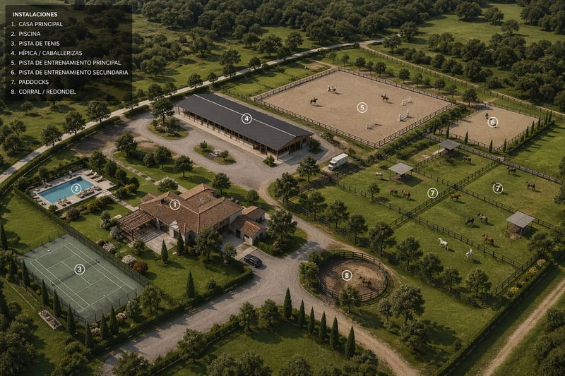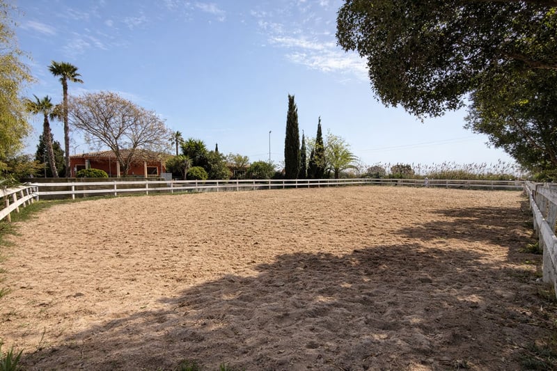 Estas buscando una vivienda donde poder disfrutar de tu finca ecuestre? Desde EQ iberica te presentamos esta preciosa propiedad. Nos encontramos ante una precioso Chalet con piscina, pista de tenis y jardines exteriores con una instalación hípica adosada de 8.000m2. La propiedad se encuentra en la Vega Baja de Alicante, próxima a Torrevieja y con rápidos accesos a la AUTOVIA A-7. 30 min al aeropuerto de Alicante y 60 min hasta las instalaciones de OLIVA NOVA MET. Actualmente la propiedad se encuentra en pleno funcionamiento con todas las licencias en regla. La propiedad cuenta. -Nave con 21 box -Box con paddock -Box para Yeguas -Corral de 40x20 com caballos en libertad -Pista entrenamiento 15x15 -Pista entrenamiento 20x40 -Rega 30 caballos -Zona social con vestuario ---Vivienda 300m2----- -3 dormitorios -Salon comedor -Cocina -2 baños completos -Piscina de 10x6 -Pista de tenis La vivienda cuenta con todas las comodidades para el día a dia. ( Por privacidad de los propietarios no se publicarán imágenes del interior ni exterior de la vivienda) Las imágenes han sido modificas manteniendo los espacios y aspecto lo mas reales posibles para privacidad de los propietarios. Para mas información escribenos