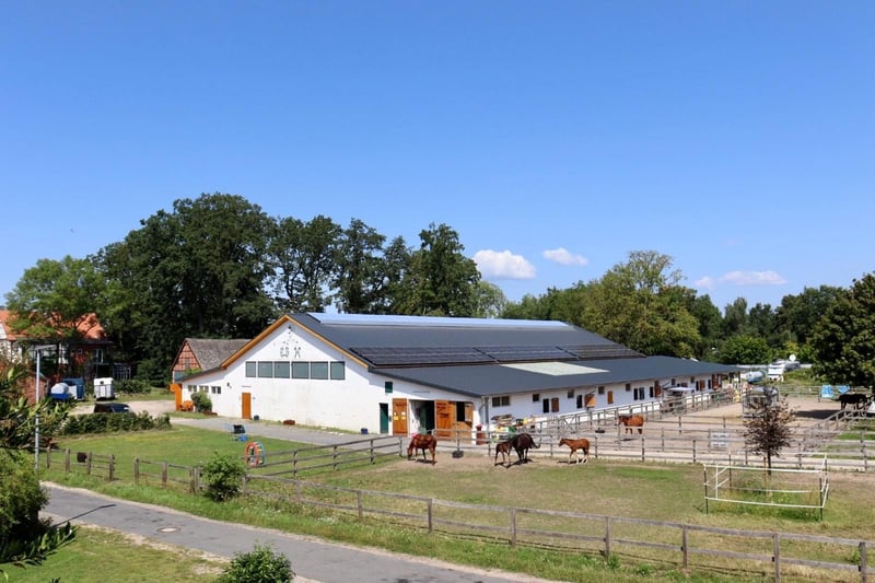 Bitte füllen Sie das nachfolgende Kontaktformular vollständig aus bevor Sie uns telefonisch kontaktieren. Vielen Dank für Ihr Verständnis! Reitanlage in Dannenberg (Elbe) im Landkreis Lüchow-Dannenberg mit bereits sanierten Stallungen und Reithalle zu verkaufen! Objektbeschreibung: Zum Verkauf steht eine umfassend sanierte Reitanlage in Dannenberg (Elbe) auf einem Grundstück von ca. 14.792 m². Die gesamte Hofanlage wurde zwischen 2021 und 2023 modernisiert, insbesondere sämtliche Dachflächen erneuert, wodurch sich die Anlage in einem deutlich aufgewerteten Gesamtzustand präsentiert. Das Wohnhaus aus dem Jahr 1968 verfügt über drei Wohneinheiten mit ca. 160 m² Wohnfläche und ist voll unterkellert. Die Bausubstanz ist massiv, der Zustand jedoch sanierungsbedürftig und bietet Entwicklungspotenzial. Beheizt wird über Strom-Nachtspeicheröfen. Vor dem Haus befinden sich PKW-Stellplätze sowie eine Einzelgarage. Eine Terrasse mit Gartenblick und ein Balkon im Obergeschoss runden das Wohnangebot ab. Die Stallungen (überwiegend Baujahr 1956) wurden 2021–2023 saniert und umfassen 4 Laufstallboxen (6×5 m), 13 Fensterboxen und 10 Innenboxen. Ergänzt werden Sattel- und Futterkammern sowie Wasch- und Putzplätze. Die Reithalle (20×40 m, Baujahr 1955) verfügt über einen hochwertigen Sand-/Vliesboden, LED-Beleuchtung und eine Beregnungsanlage der Firma Buchholz. 2023 wurde auf die sanierte Dachfläche eine PV-Anlage mit 29 kWp inkl. Pufferspeicher installiert (Eigenstromnutzung, Laufzeit bis 2043). Ergänzend steht eine Longierhalle (Ø 20 m, 2023) mit Stahlkonstruktion (Firma Molenkönig), sowie ein 30×70 m Reitplatz (2020, drainiert, beregnet, eingezäunt) zur Verfügung. Eine Bergehalle (2022, ca. 200 m²) ergänzt die Anlage. Direkt am Hof befinden sich Gras- und Sandpaddocks, die den Pferden kurze und komfortable Wege ins Freie ermöglichen. Weitere 1,5 ha können zusätzlich erworben werden. Die technische Ausstattung der Anlage rundet den professionellen Gesamteindruck ab und sorgt für einen effizienten, gut organisierten Betriebsablauf im täglichen Reit- und Stallmanagement. Ausstattung: Wohnhaus: - Baujahr: 1968, 3 Wohneinheiten - Wohnfläche: ca. 160 m² - Zustand: sanierungsbedürftig - Heizung: Strom (Nachtspeicheröfen) - Unterkellerung: voll unterkellert - Fenster: Doppelverglasung, Holz - Parkplätze für PKWs vor dem Haus, Einzelgarage - Gemütliche Terrasse mit Blick zum Garten, Balkon im 1.OG Stallungen: - Baujahr Gebäude: 1956, Saniert 2021 – 2023 - 4 Laufstallboxen (6 x 5 Meter) - 13 Fensterboxen - 10 Innenboxen - Sattelkammer und Futterkammer im Gebäude vorhanden - Waschplatz / Putzplätze - Dach: Trapezblech (Sandwichplatten mit 60 mm Stärke) aus 2021-2023 - Hersteller: Große Winkelmann Reithalle: - Baujahr: 1955 - Reitmaß: 20 x 40 Meter - Boden: Sand-/Vliesgemisch - Beleuchtet - Beregnungsanlage der Firma Buchholz - Holzkonstruktion - Dach: Trapezblech (Sandwichplatten mit 60 mm Stärke) aus 2021-2023 - Photovoltaikanlage: Aus dem Jahr 2023, 29 kWp, Pufferspeicher vorhanden (Eigennutzung), Laufzeit Ende 2043 Longierhalle: - Baujahr: 2023 - Durchmesser: 20 Meter - Boden: Sand-/Vliesgemisch - Beleuchtet - Beregnunganlage der Firma Buchholz - Stahlkonstruktion - Hersteller: Molenkoning Reitplatz: - Baujahr: 2020 - Reitmaß: 30 x 70 Meter - Boden: Sand-/Vliesgemisch, drainiert - Beregnungsanlage vorhanden - Einzäunung Weiteres: - Bergehalle, Baujahr: 2022 mit ca. 200 m² Bruttogrundfläche - Gras- und Sandpaddocks - Mistentsorgung per Container, geht wöchentlich zur Biogasanlage - Solarium inkludiert - Laufband inkludiert Lage: Dannenberg (Elbe) ist eine Stadt im Landkreis Lüchow-Dannenberg im äußersten Osten Niedersachsens. Die Stadt Dannenberg ist Mitgliedsgemeinde und Sitz der Samtgemeinde Elbtalaue. Die Stadt ist verkehrstechnisch über mehrere Bundesstraßen gut an das regionale und überregionale Straßennetz angebunden. Die Bundesstraßen B191, B216 und B248 verbinden die Stadt mit den umliegenden Mittelzentren wie Lüneburg, Uelzen und Salzwedel sowie mit weiter entfernten Oberzentren wie Hamburg, Hannover und Berlin. Im öffentlichen Nahverkehr besteht eine Anbindung über die Wendlandbahn. Dannenberg (Elbe) im Landkreis Lüchow-Dannenberg bietet eine ruhige, ländlich geprägte Lebensqualität mit einer soliden Grundversorgung und einem starken Bezug zur Natur. Für den Einkauf stehen mehrere Supermärkte, Bäckereien, Drogerien und kleinere Fachgeschäfte zur Verfügung. Ergänzt wird das Angebot durch regionale Anbieter und Wochenmärkte, auf denen frische Produkte aus der Umgebung verkauft werden, sodass die Nahversorgung insgesamt gut abgedeckt ist. Auch Familien finden in Dannenberg eine verlässliche Infrastruktur: Es gibt mehrere Kindertagesstätten und Kindergärten mit unterschiedlichen Betreuungs- und pädagogischen Konzepten sowie ein gutes schulisches Angebot mit Grundschulen, Oberschulen und einem Gymnasium, sodass auch höhere Bildungsabschlüsse direkt vor Ort möglich sind. Die medizinische Versorgung ist ebenfalls gegeben, unter anderem durch Haus- und Fachärzte sowie Apotheken, die die Versorgung mit Medikamenten sicherstellen; für spezialisierte Behandlungen werden die umliegenden größeren Städte wie Lüneburg oder Uelzen genutzt. Der Freizeit- und Kulturbereich ist stark von der naturnahen Lage geprägt: Die Elbtalaue bietet ideale Bedingungen für Spaziergänge, Radfahren, Reiten oder Wassersport, während lokale Vereine, Veranstaltungen, Märkte und kleinere kulturelle Angebote das gesellschaftliche Leben bereichern. Insgesamt verbindet Dannenberg eine ruhige, naturverbundene Wohnlage mit einer funktionierenden Infrastruktur und einem aktiven Gemeinschaftsleben. Energieausweis: Wesentlicher Energieträger: Strom (Nachtspeicheröfen im Haus) Bedarfsausweis Endenergieverbrauch: 131,03 kWh/(m²*a) Energieeffizienzklasse: E Baujahr laut Energieausweis: 1968, Energieerzeuger aus 1980 - 2010 Weitere Informationen: 