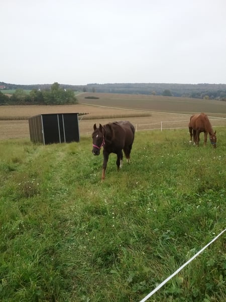 Nach Geschlecht getrennt, kleine Gruppen, maximal 4 Pferde. Riesige Weide mit Weidehütte und Vordach. Auf Wunsch übernehme ich gerne die ersten Schritte des Fohlen ABC s. Dh. Hufe geben, Anbinden, Putzen,... Gerne kann auch Anhängertraining und Führtraining durchgeführt werden (altersentsprechend versteht sich) Pferdeerfahrung und Zucht seit über 30 Jahren, ihr Pferd bei uns in guten, erfahrenen Händen. Wir haben einen landwirtschaftlicher Betrieb, eigenes Heu, Stroh und Getreide. Weitere Infos gerne erfragen.