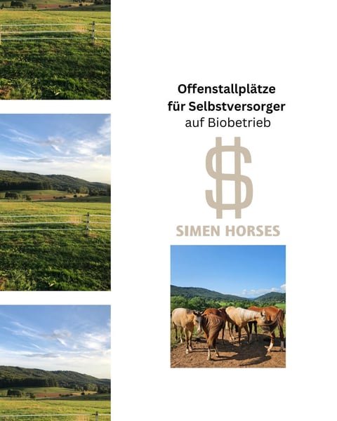 Free places in pure gelding and pensioner herd!!! We have open stable places available immediately (or by arrangement) for purely self-catering horses. Our main yard -Simen Horses- is directly adjacent to the renovated open stable. We offer: - Stable places for up to eight horses (pure gelding herd) - pensioner herd - wonderful, extensive riding possibilities - Pastures around the stable (summer pastures) - Large, covered bedding area for the horses - Organic hay from rack and net - species-appropriate horse keeping - 15m diameter round pen - grooming and washing area - Heated tack room. If you are interested or have any other questions, please contact us.
