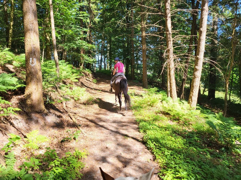 Die Seibels Ranch bietet für Pferd und Reiter exklusive Vorteile. Pferderasse oder Reitweisen unabhängig, Die Herden werden hier getrennt auf befestigten Offenstallpaddocks gehalten. Es gibt für die Tiere 24/7 Zugang zum Raufutter und Wasser. Fürs Training stehen ein Außenreitplatz,ein Trailplatz und eine Halle zur Verfügung. Um die Seele baumeln zu lassen haben wir die Hüttener Berge mit einem wunderschönen Ausreitgelände mit Naturtrail vor der Tür. Was der Hof bietet -optimale Haltungsbedingung mit ausgewähltem gewickeltem Futter,welches Überdacht in Raufen mit Heunetz jederzeit zur Verfügung steht - feste Weidezeiten, wodurch Krankheitsvorbeugend profitiert wird mit spezieller Pferdesaat auf den Wiesen, wodurch auch Rehe und Cushing Kandidaten auf die Koppel könnten - Boxen,welche für den regelmäßigen Einstand oder als Notbox dienen, in einem Kaltstall ohne Futter oder Strohlagerung -Waschboxen und exklusiv im Preis eine Solekammer, Solarium und Behandlungen mit der HHP Anduvet,was jederzeit dazu gebucht werden kann - befestigte Paddocks,welche täglich abgeäppelt werden -eigenen Spind in der Sattelkammer - regelmäßige Entwurmung durch den Stallbetreiber - Sattler im regelmäßigen Abständen (Western) -schnelle tierärztliche Versorgung - Hufschmied in regelmäßigen Abständen (freie Wahl) - Hunde dürfen unter vorheriger Absprache mitgenommen - Sanitäre Anlagen für den Zweibeiner sind selbstverständlich vorhanden - Keine Herpesimpfpflicht - Vergünstigung bei Ponys bis 1.25m Vorteile durch den Betreiber und hauseigenen Trainer -24/7 Beobachtung der Tiere -Dauerhafter Ansprechpartner zu den Geschäftszeiten und im Notfall zu jeder Zeit -Medikamentengabe in Absprache möglich -Beratung bei der Gesunderhaltung,des Equipments und der Zufütterung -optimale Trainingsbedingungen durch einen professionellen zertifizierten Trainer -Unterricht in Einzel- oder Doppeleinheiten möglich mit den Grundsätzen der Anatomie und Biomechanik des Pferdes -weitere Leistungen wie z.B. Beritt oder Teilberitt möglich -Regelmäßige Kurse wie Bodenarbeit, Verladetraining uvm. Was Du im Profil mitbringen solltest - Stute oder Wallach (KEINE Hengsthaltung) - Zaunsicheres Pferd - eine maximal Größe von 1.75m des Pferdes - die Kapazität für 3-4 Äppeldienste im Monat (ca 1 Stunde/ Dienst) - Boxenpferde werden in Eigenregie gemistet Wenn wir dein Interesse geweckt haben, melde dich sehr gerne. Weitere Informationen, Kurse und Workshops findet ihr auf www.seibelsranch.de